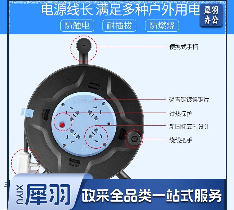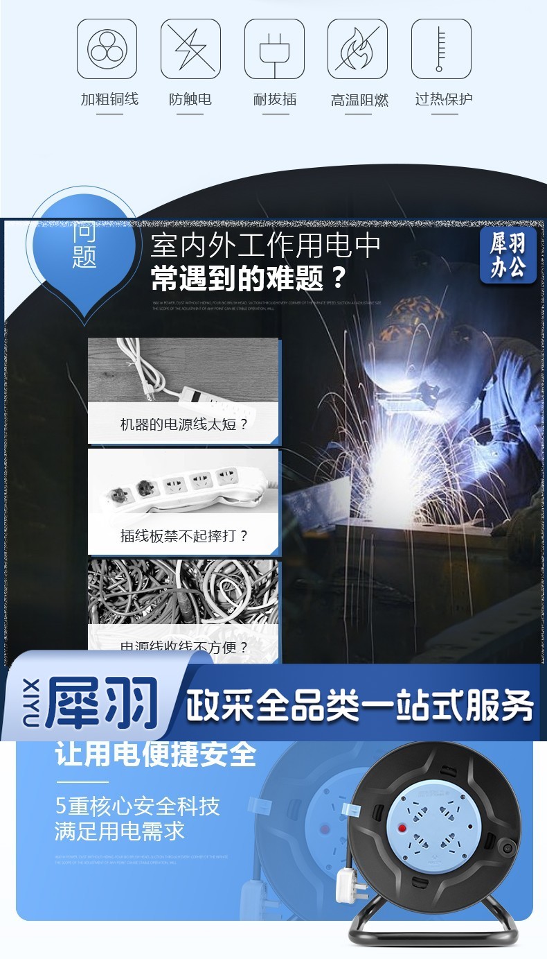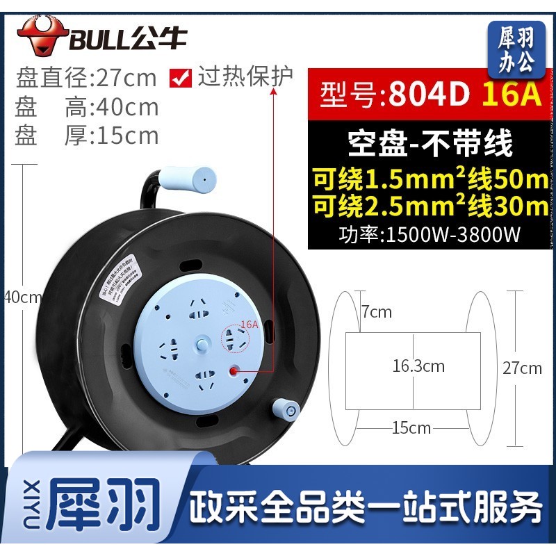 公牛(BULL)GN-8030工程接线盘移动电缆电线卷线盘/盘线轴工程地拖绕线盘拖线盘自接线 4位总控全长20米
