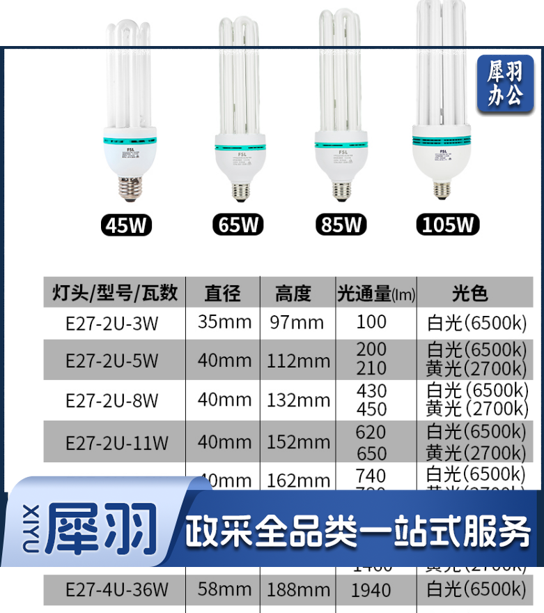 佛山 T4电子节能灯 8W(2U)E27/6500K 白光