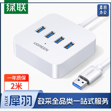 绿联(UGREEN)15715 USB分线器3.0接口转换器 四合一扩展坞转接头 HUB集线器USB延长线 一拖多笔记本/台式机转换器 2米