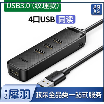 绿联(UGREEN)20488 USB3.0分线器扩展器多接口一拖四七插口u盘外接多功能带供电口hub 【USB3.0高速】细长 黑色 1.5