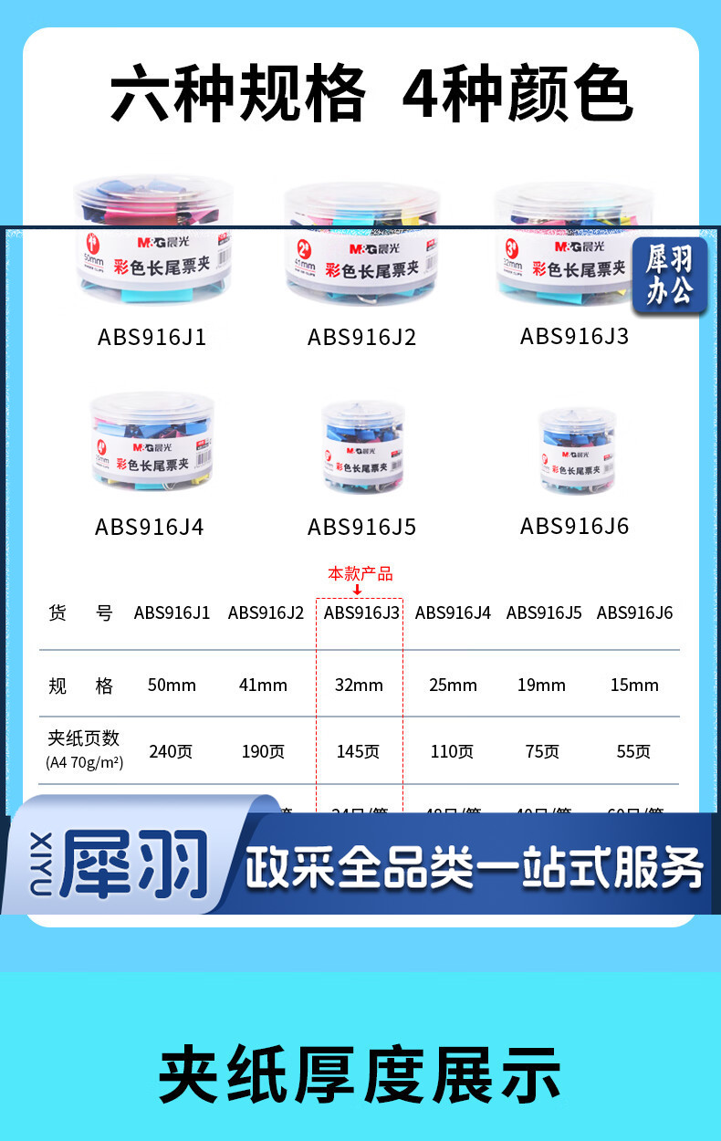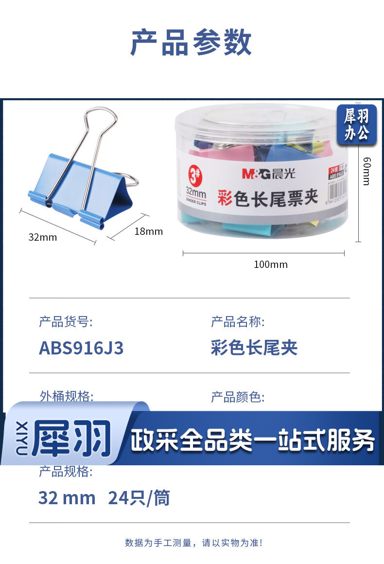 晨光(M&G)文具3#32mm 24只/罐 彩色长尾夹 中号金属票据夹 经济型办公燕尾夹 ABS916J3