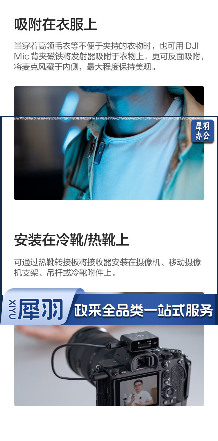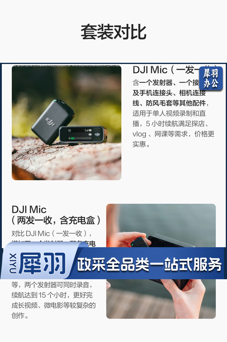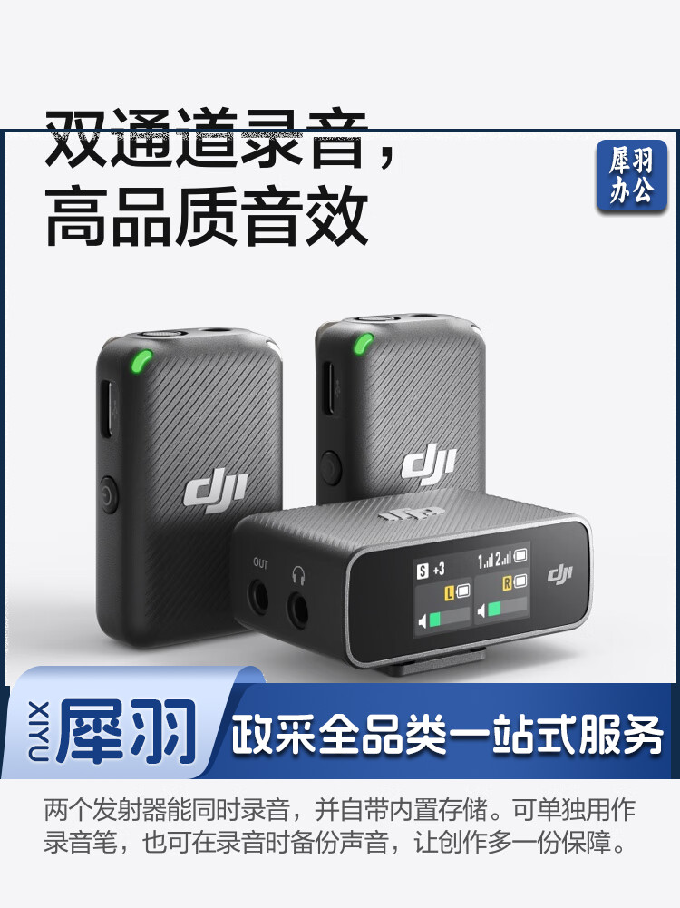 大疆 DJI Mic 无线麦克风 一拖二无线领夹麦克风 手机相机采访vlog直播录音收音麦