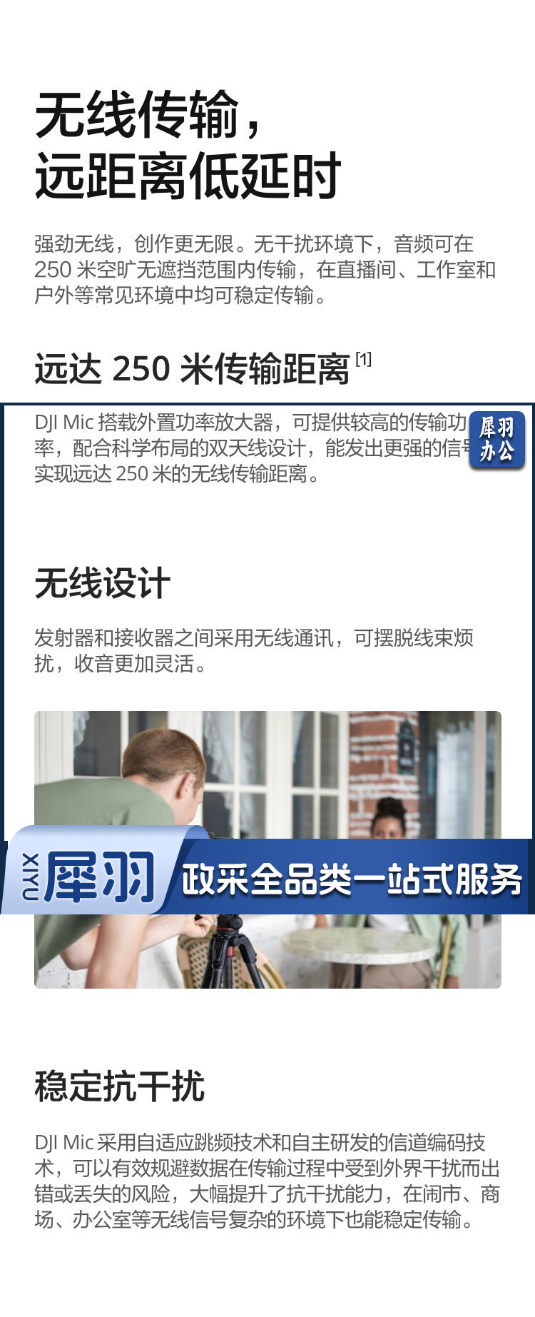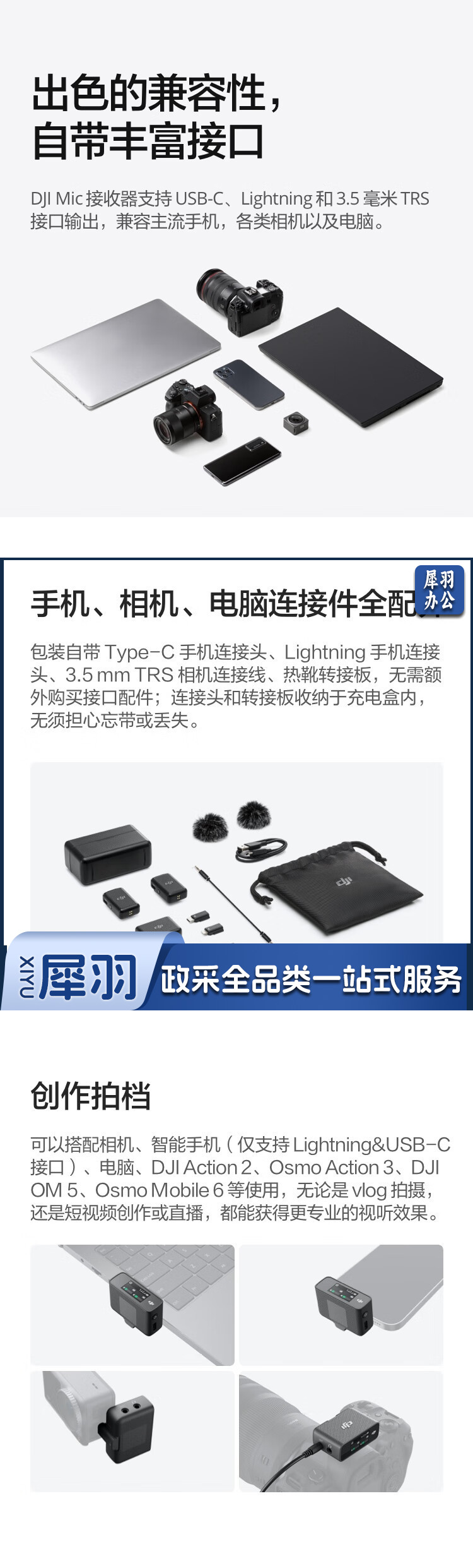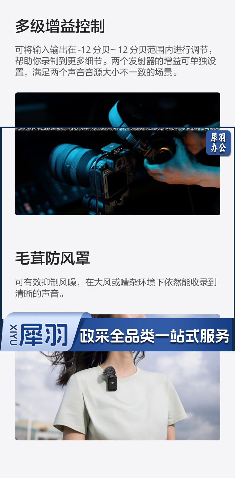 大疆 DJI Mic 无线麦克风 一拖二无线领夹麦克风 手机相机采访vlog直播录音收音麦