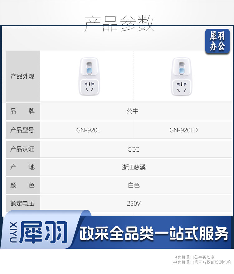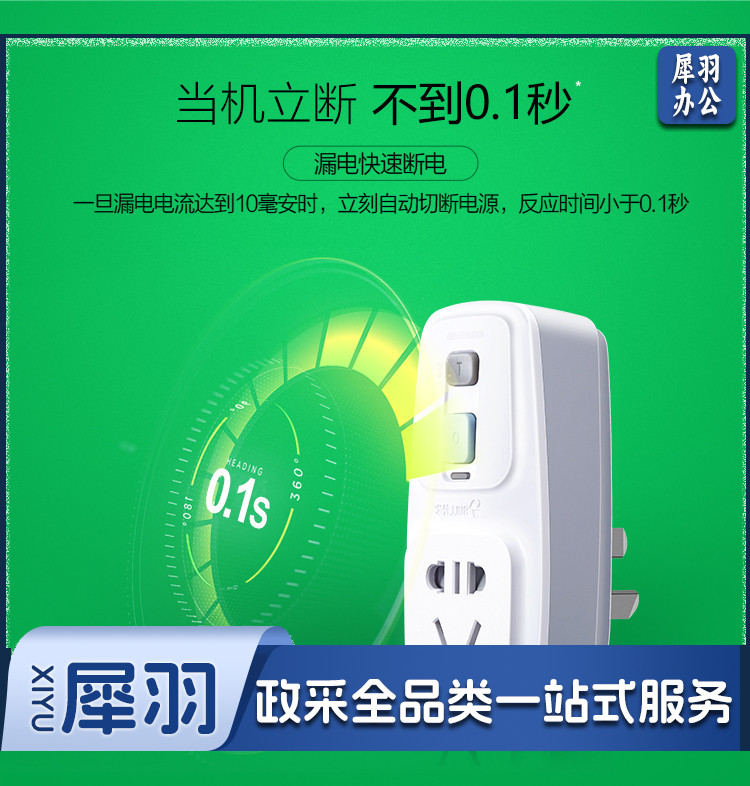 公牛(BULL)新国标防漏电保护器插头10A无线插头常规版GN-920L