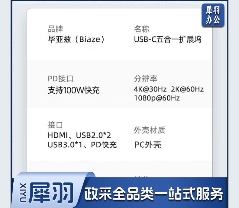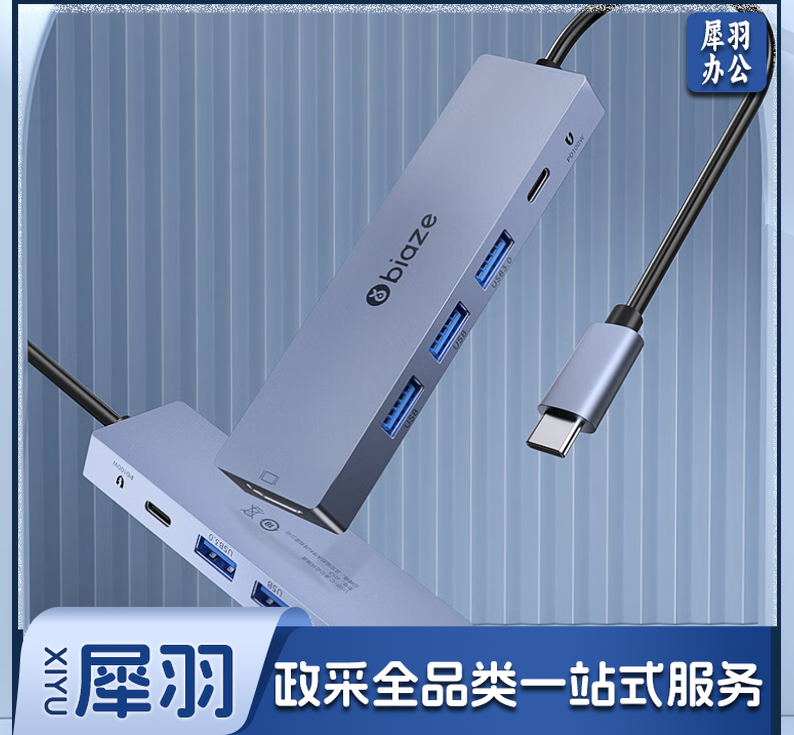 毕亚兹 Type-C扩展坞 USB-C转HDMI转接头4K投屏PD充电 R53-5口