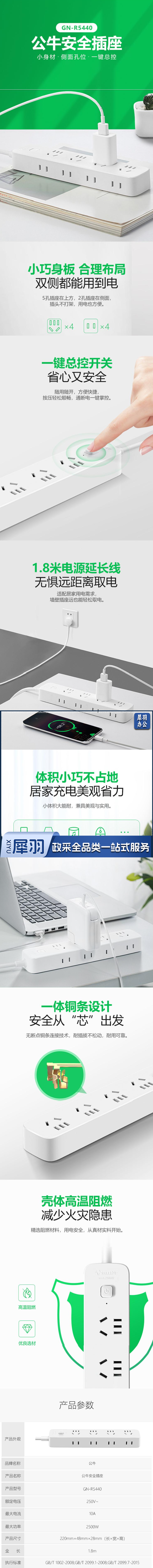 公牛GN-R5440 新国标插座 8位总控1.8米