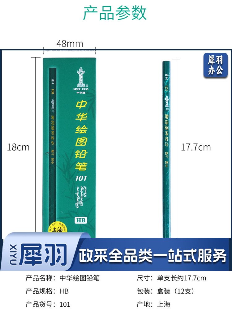 中华(CHUNGHWA) 101 HB 12支/盒 铅笔(单位:盒)