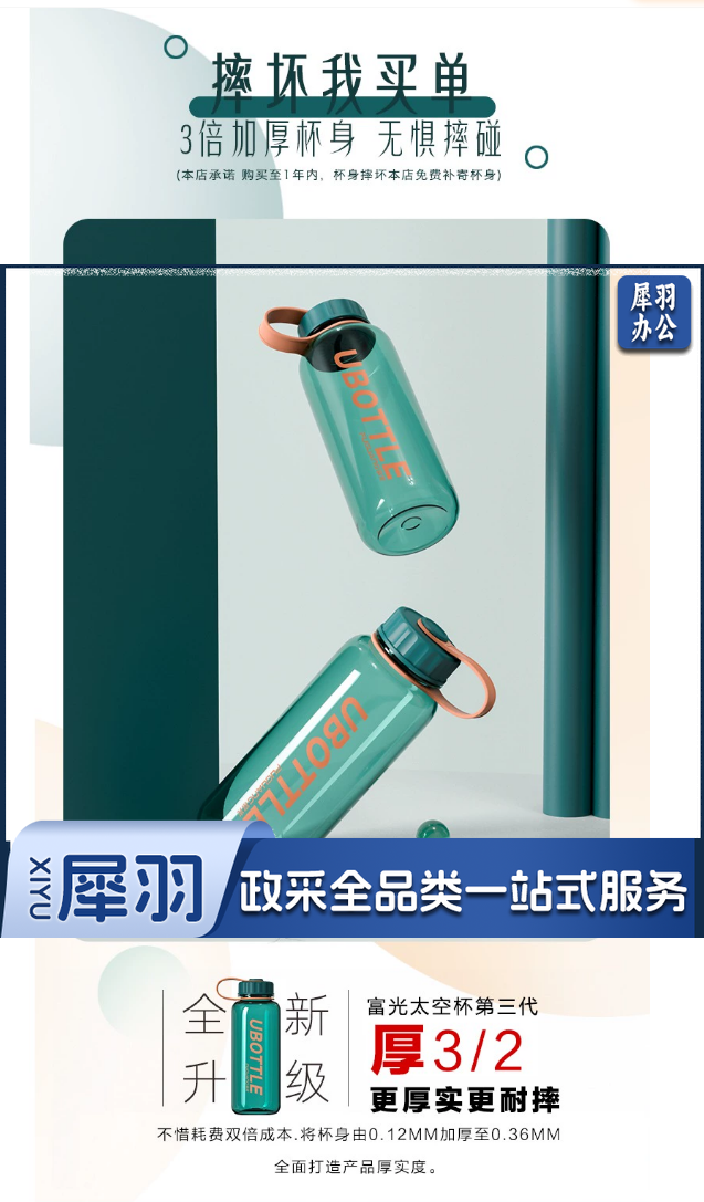 富光大容量太空水壶男士夏季户外运动便携水杯耐高温防摔塑料杯子