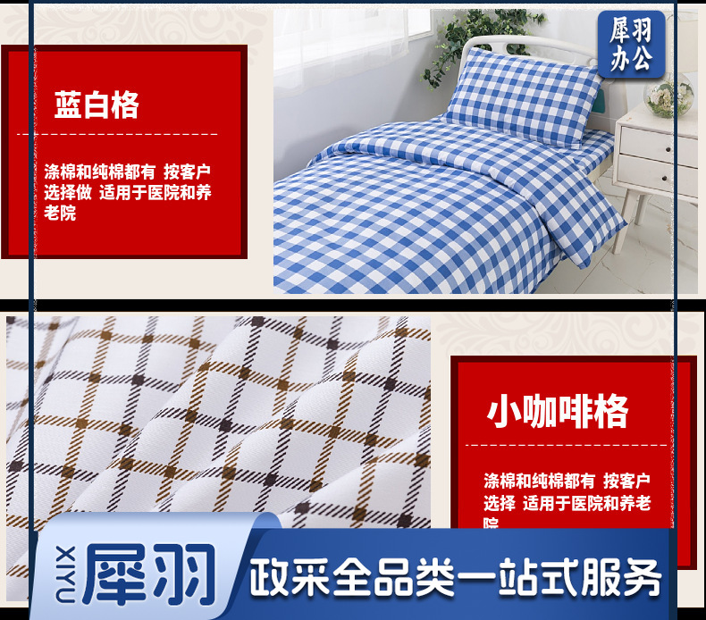医护养老院医护病房病床用白色床单被套床上用品卫生院三件套支持定制(详情联系客服)