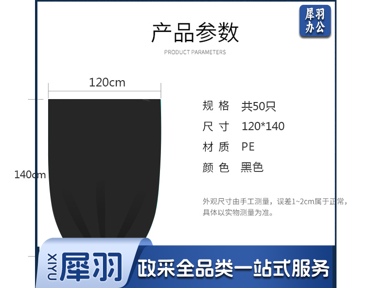 平口垃圾袋 加厚环保分类清洁袋子 120cm*140cm垃圾袋(50只)