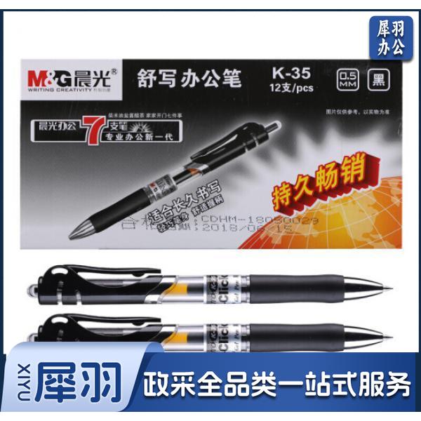 晨光K35按动中性笔签字笔水性笔按动子弹头经典办公笔医生用处方笔0.5mm 12支 黑色