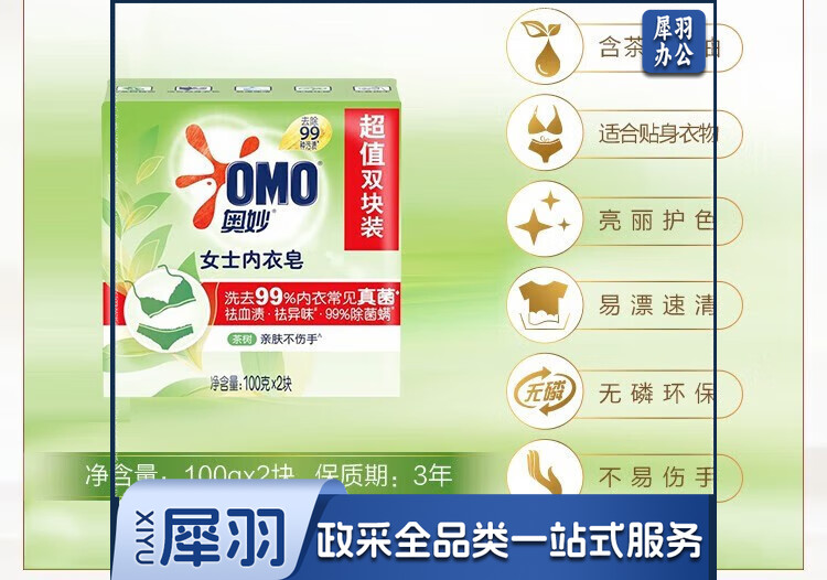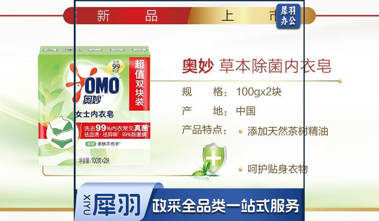 奥妙(OMO) 草本内衣皂手洗内衣贴身衣物清洁女士洗衣皂 茶树精油内衣皂100g*2