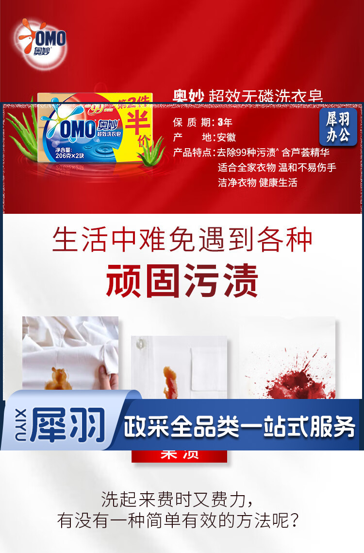 奥妙(OMO) 内衣皂透明皂温和清洁去污渍温和不伤手 去污渍洗衣皂206g*2