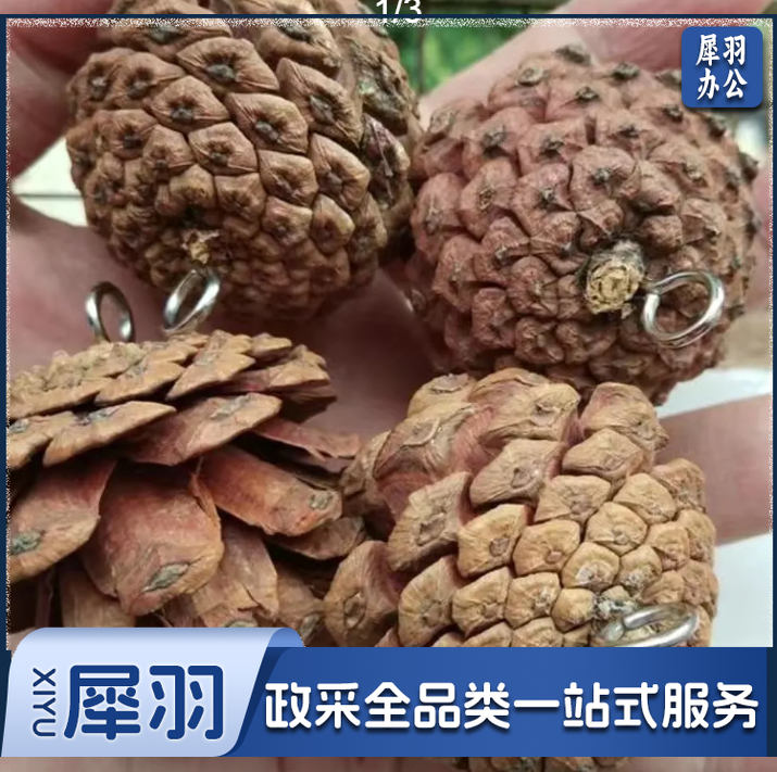 圣诞松果带钉松果天然手工圣诞装饰松果挂件摄影道具diy鹦鹉玩具