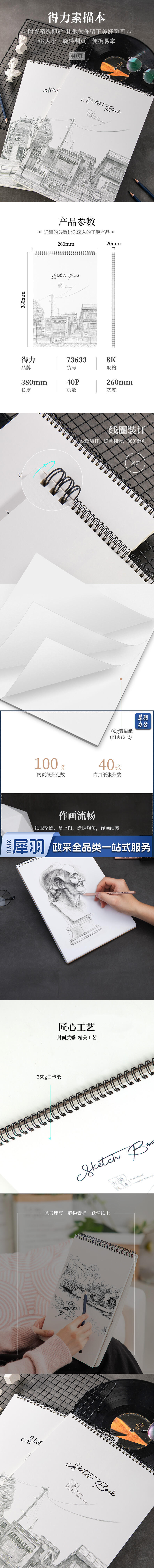 得力/deli 73633 素描本-8K-380mmx260mm/40页(单位:本) 混