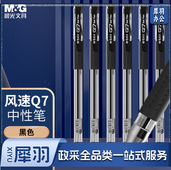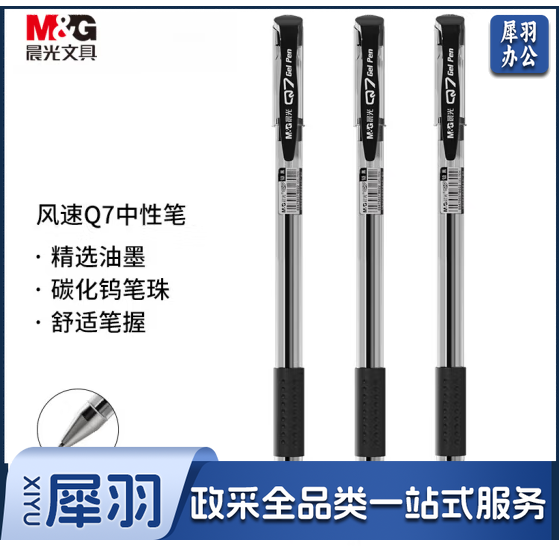 晨光 风速Q7 中性笔子弹头签字笔 办公用笔红色 12支/盒