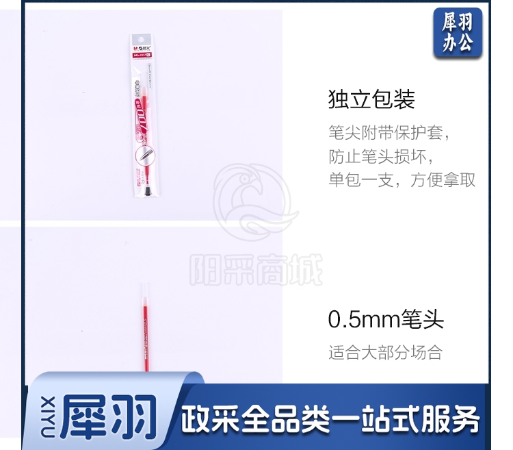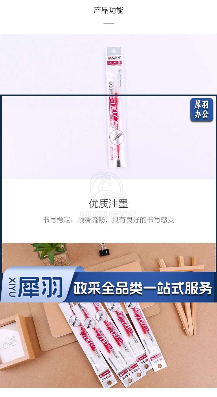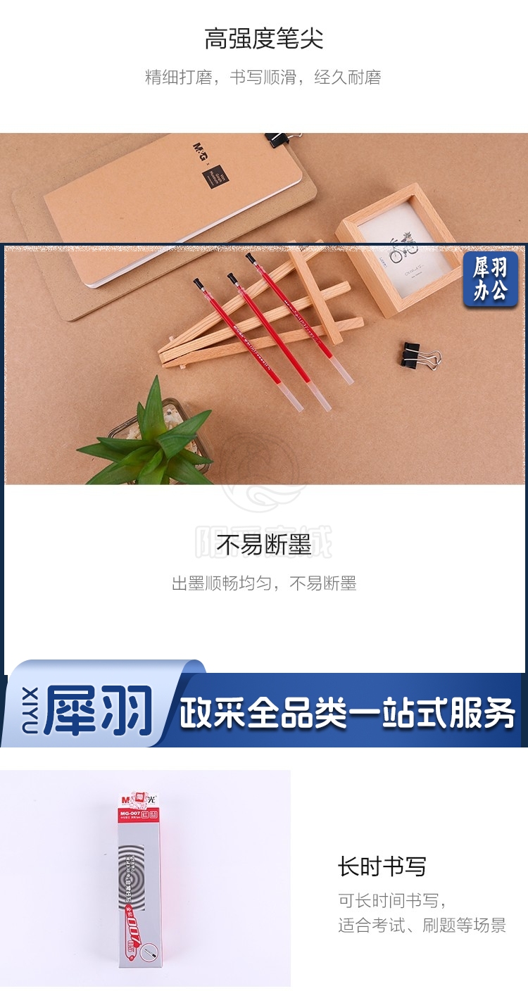 晨光(M&G)文具 20支/盒 MG007子弹头中性笔芯签字笔替芯金钻007系列水笔芯红色