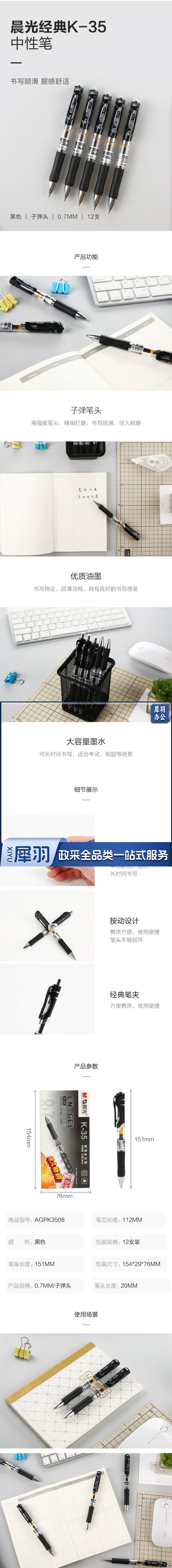 晨光 M&G AGPK3508 经典按动子弹头中性笔 0.7mm 黑色 12支/盒 计价单位:盒