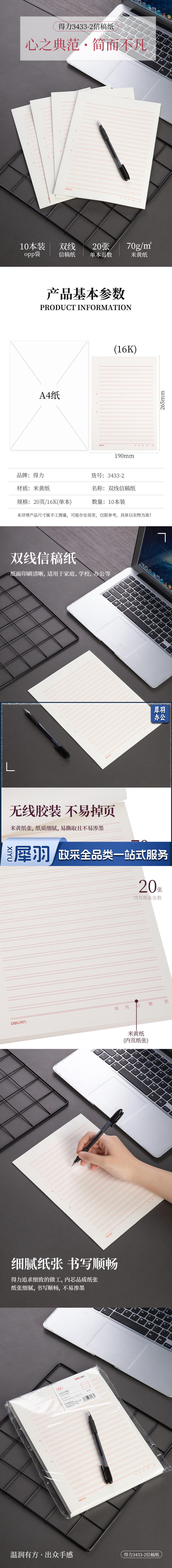 得力/deli 3433-2 信稿纸(双线) 10本/包(单位:包)