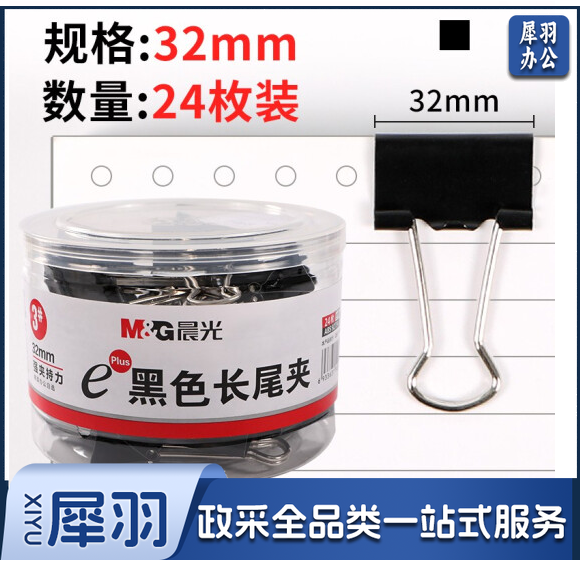 晨光 ABS92734长尾夹 黑色 32mm *24枚/筒 5筒装
