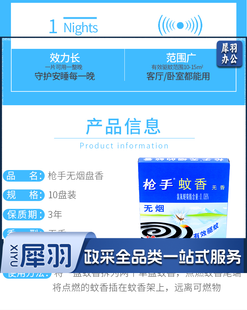 枪手 无烟蚊香 大盘 10单/盘