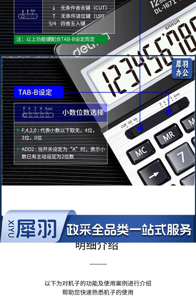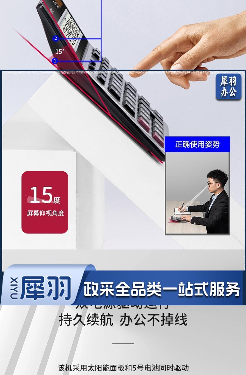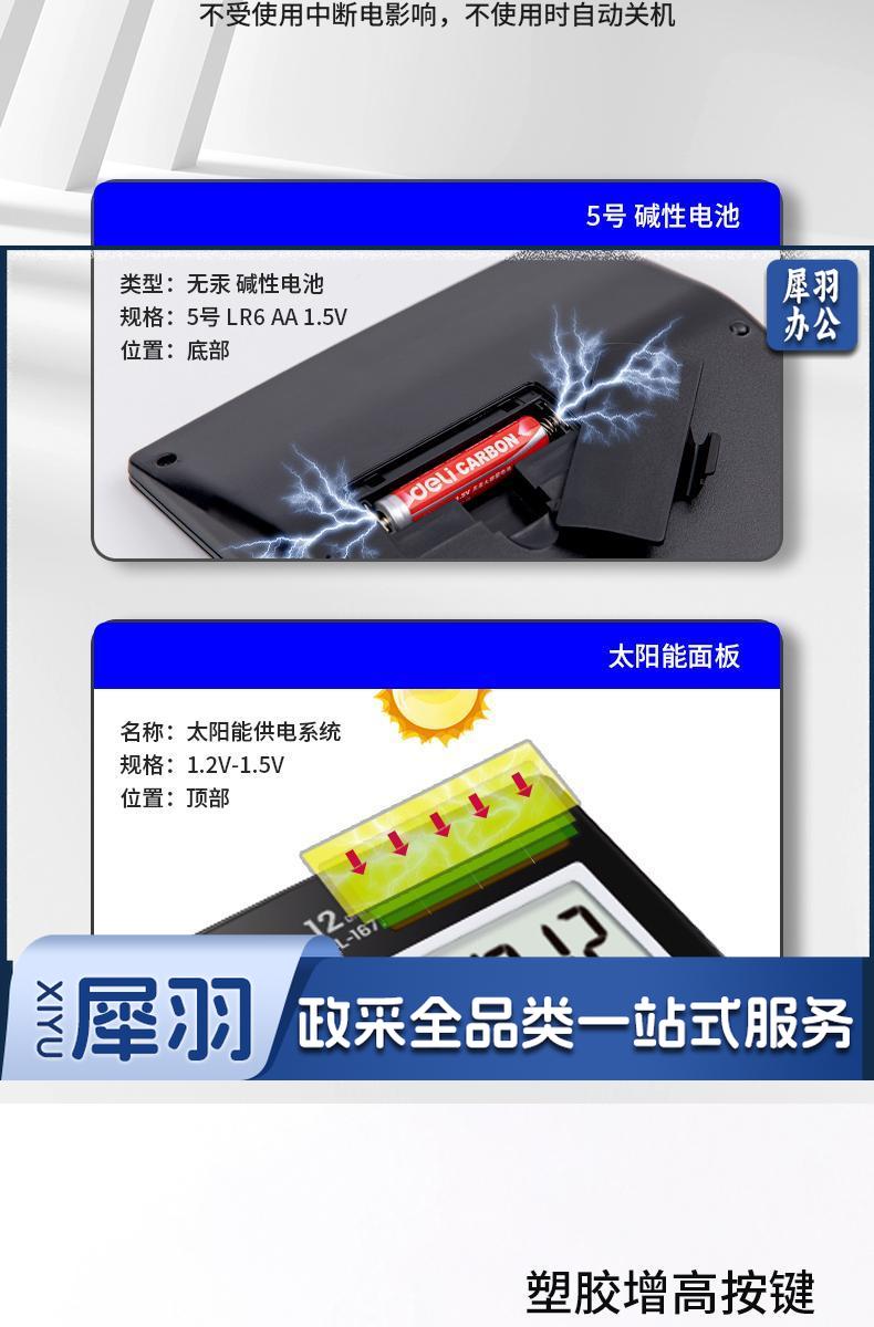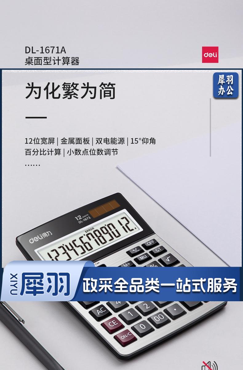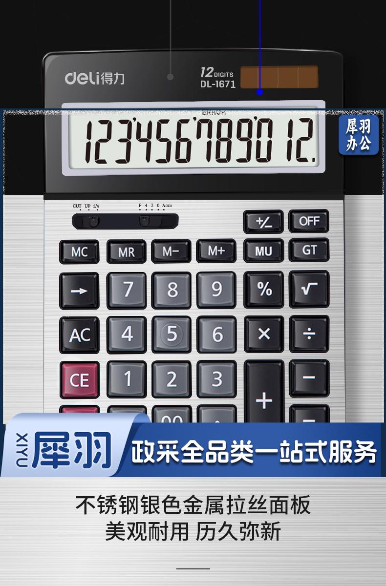 得力(deli)双电源商务办公桌面计算器 12位大屏塑胶按键桌面计算机位数功能款-大号