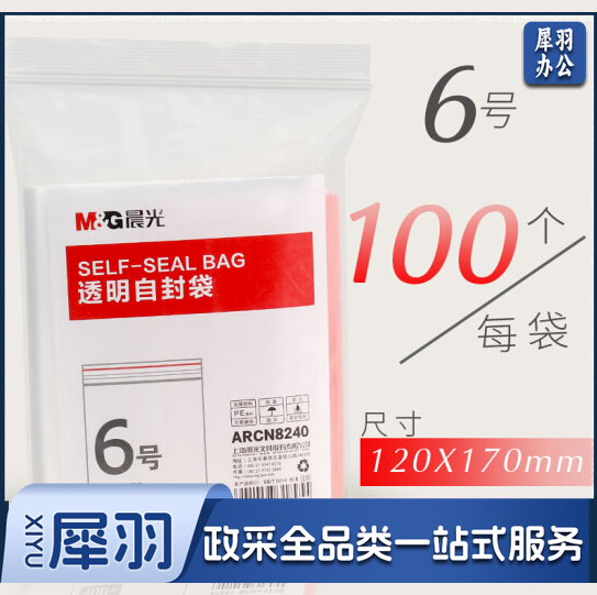 晨光 6号透明自封袋ARCN8240(120x170mm)100个