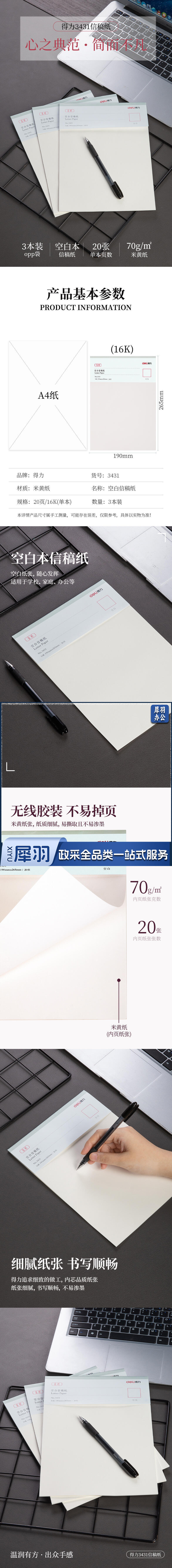 得力/deli 3431 信稿纸(空白) 3本/包(单位:本)