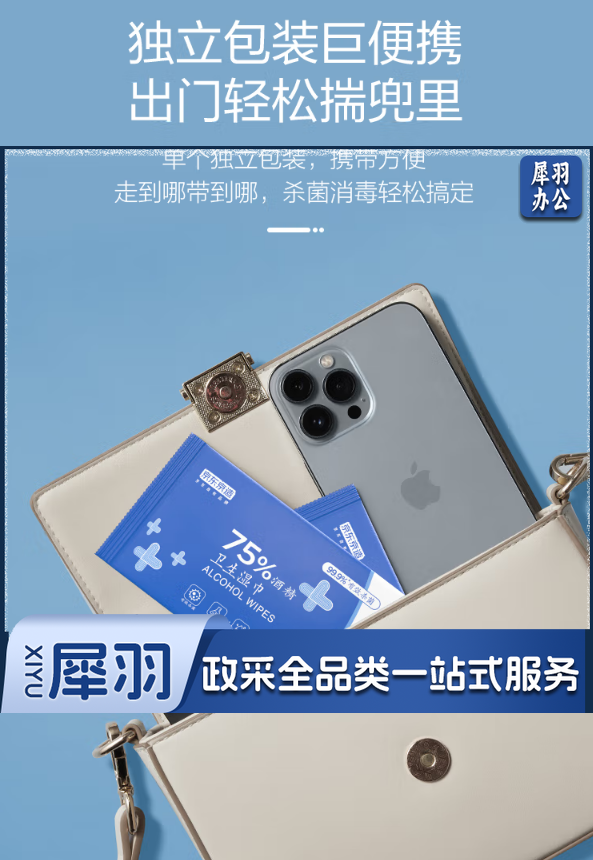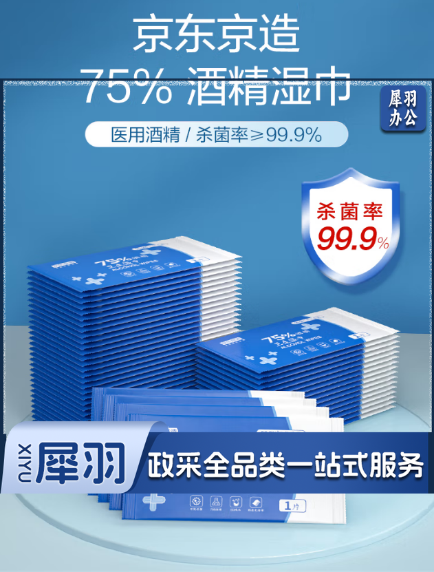 京东京造 75%酒精湿巾独立装50片 杀菌湿巾 湿纸巾 酒精棉片 杀菌率99.9% 5件起订