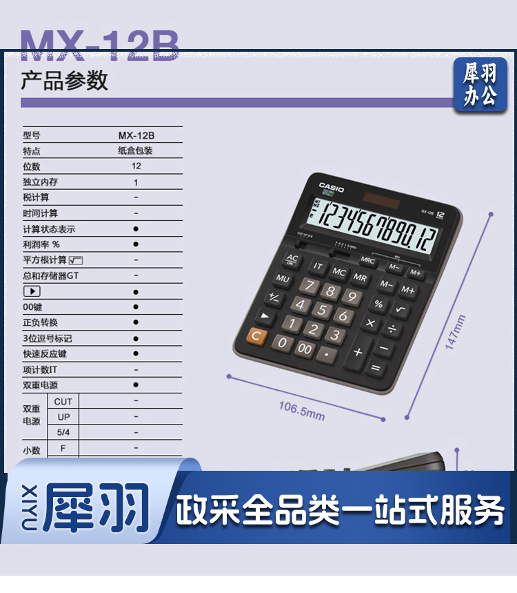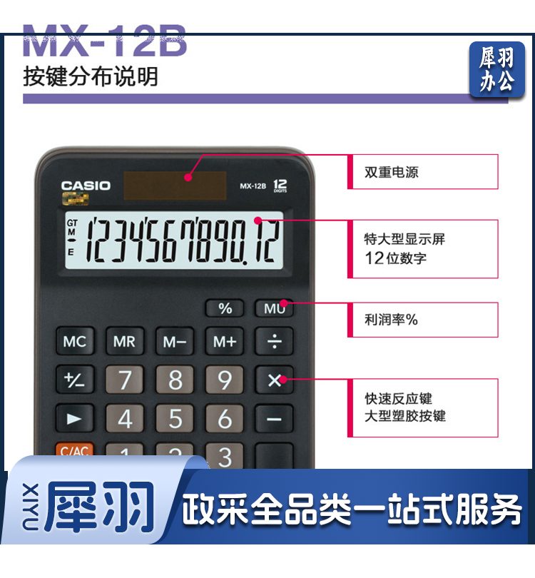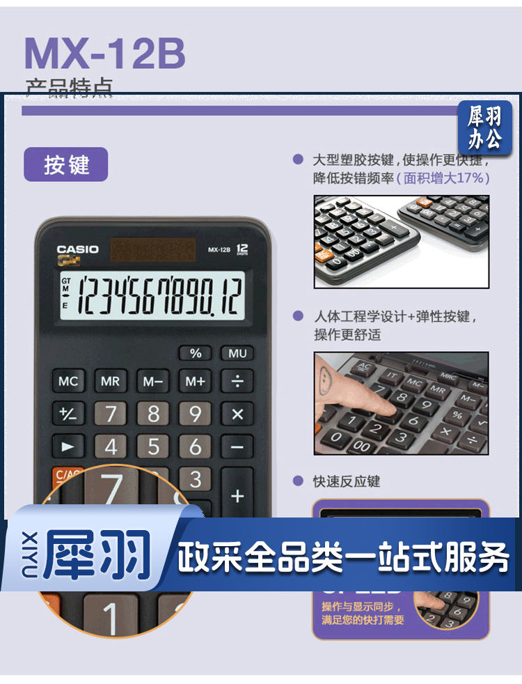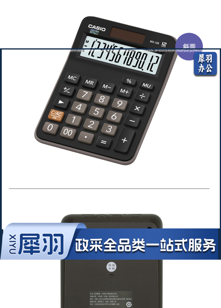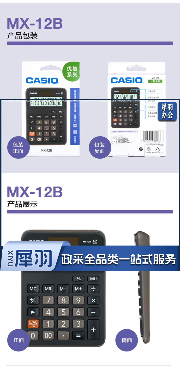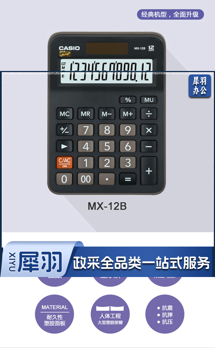 卡西欧/CASIO MX-12B 日常商务优智系列小型机 黑 单位:台