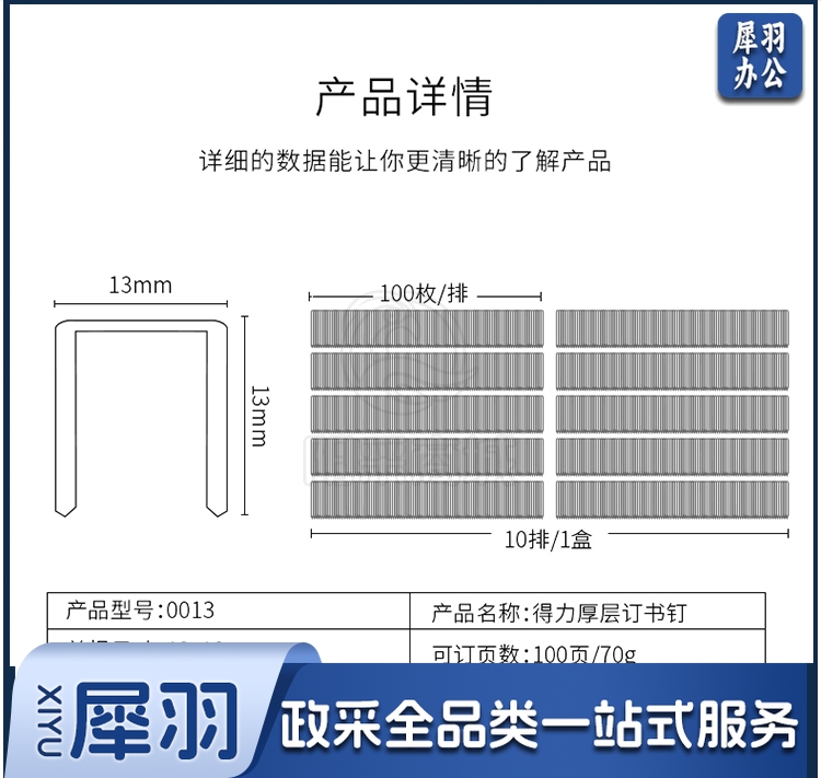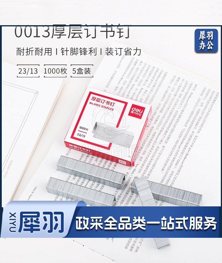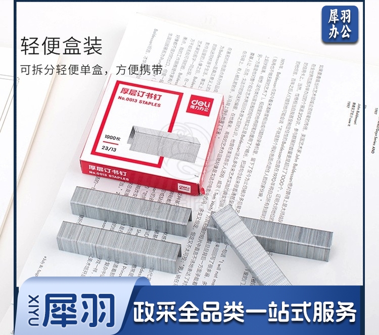 得力(deli) 23/13厚层订书钉/订书针1000枚/盒办公用品0013