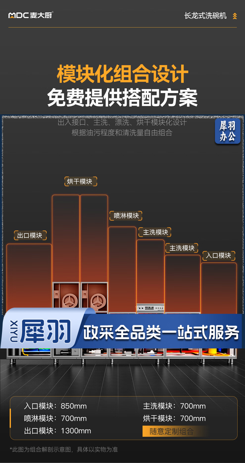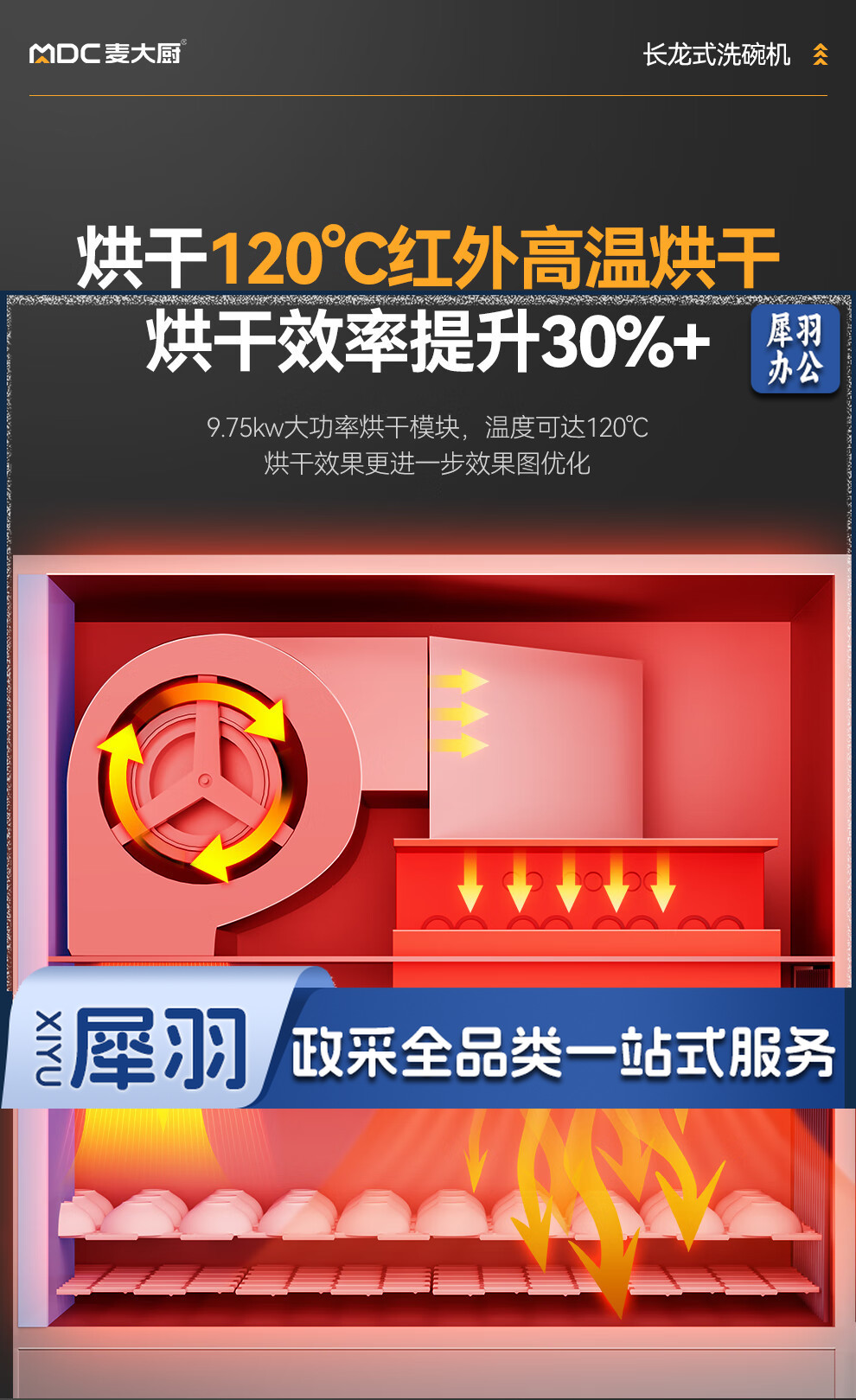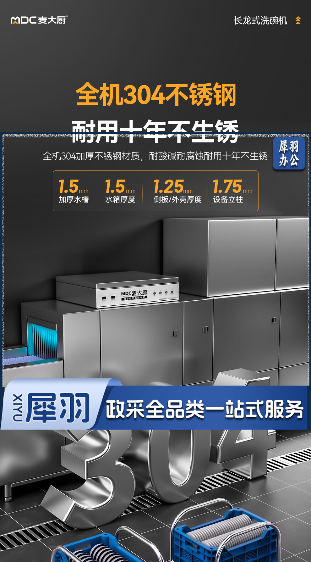 麦大厨 380V 56.35KW PFS-390平放式单缸双喷淋一烘干洗碗机(含分配器)