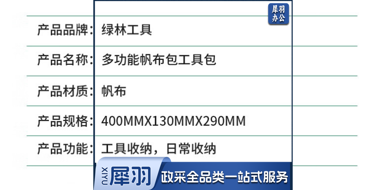 绿林(GREENER)长方形加厚帆布工具包 工具袋收纳包027332