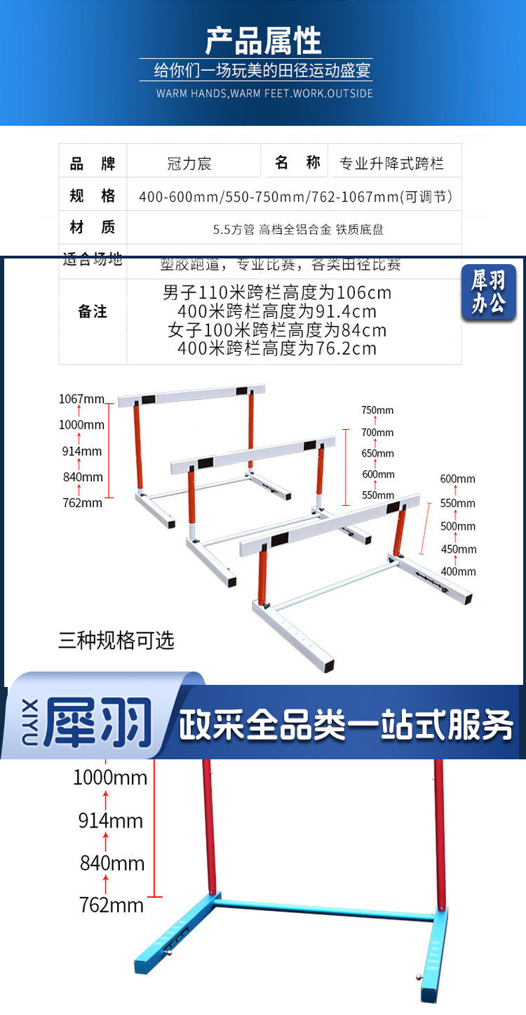 田径标准比赛跨栏中小学生成人110米栏运动会可升降可调节跨栏架1067mm