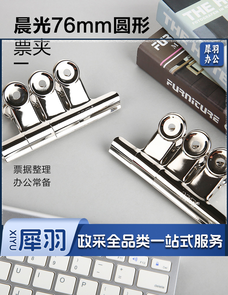 晨光(M&G)文具76mm银色圆形票夹 办公资料整理夹 不锈钢财务票据夹 6个装ABS92645