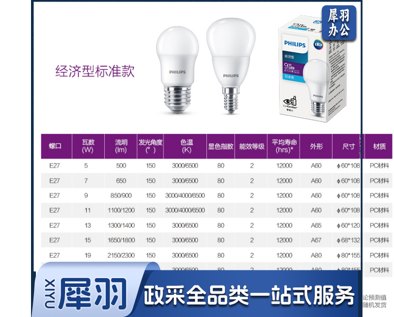 飞利浦 LED灯泡节能球泡灯大螺口E27 经济型灯泡13W