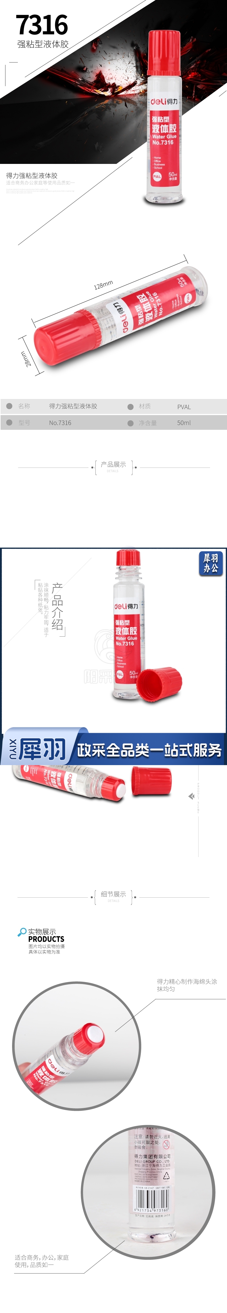 得力(deli) 7316液体胶水强粘性透明带海绵刷头办公学生手工粘贴50ml