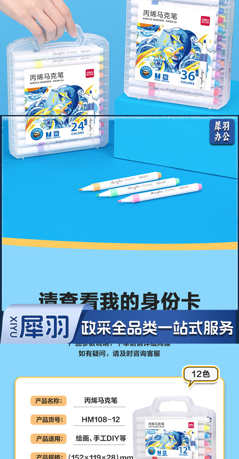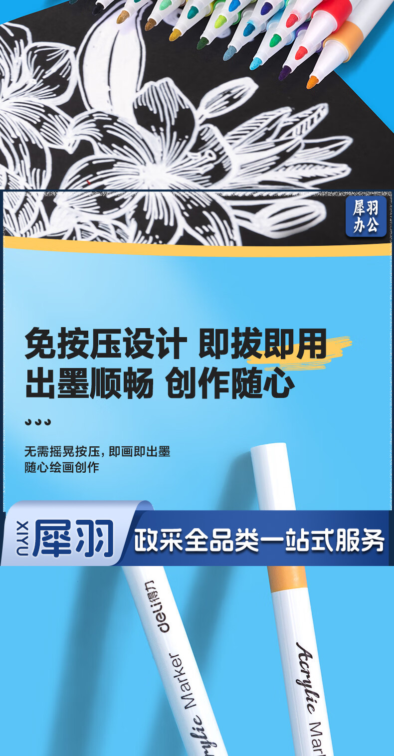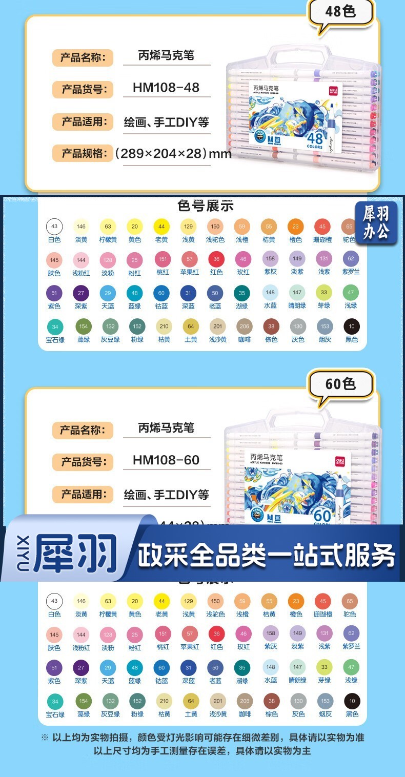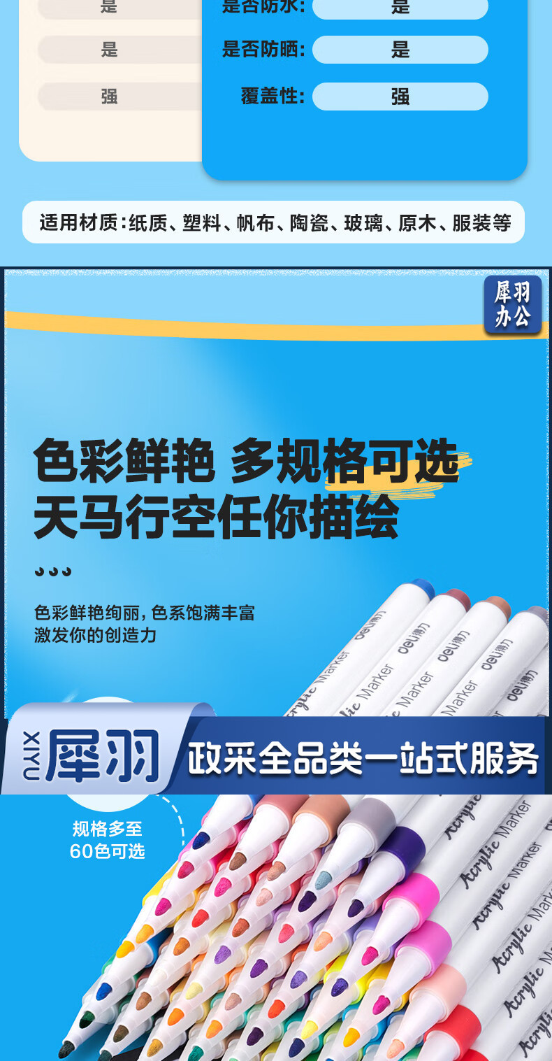 得力(deli)60色丙烯马克笔 PP盒装细圆杆防水儿童美术学生绘画手绘涂鸦DIY画鞋丙烯颜料 / 盒