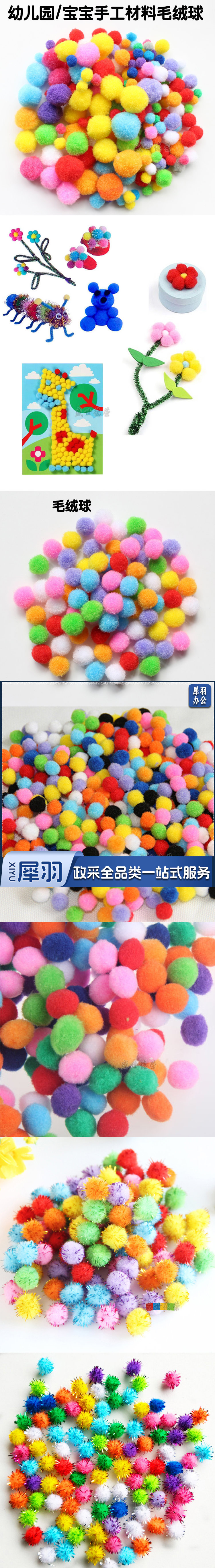 彩色毛球绒球 毛毛球 幼儿园diy手工材料 毛绒球 直径约0.8cm、1cm、1.5cm、2.5cm、3cm