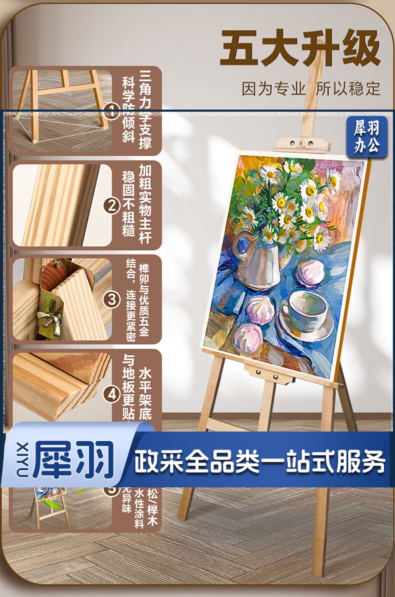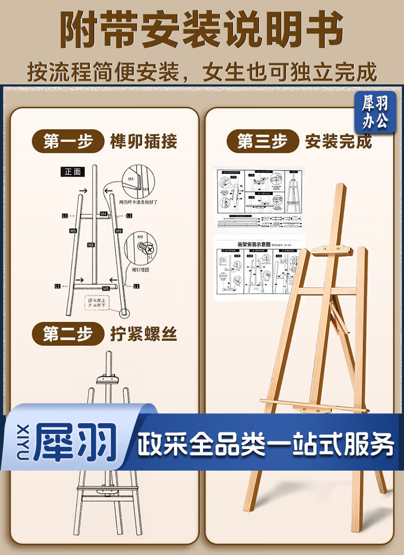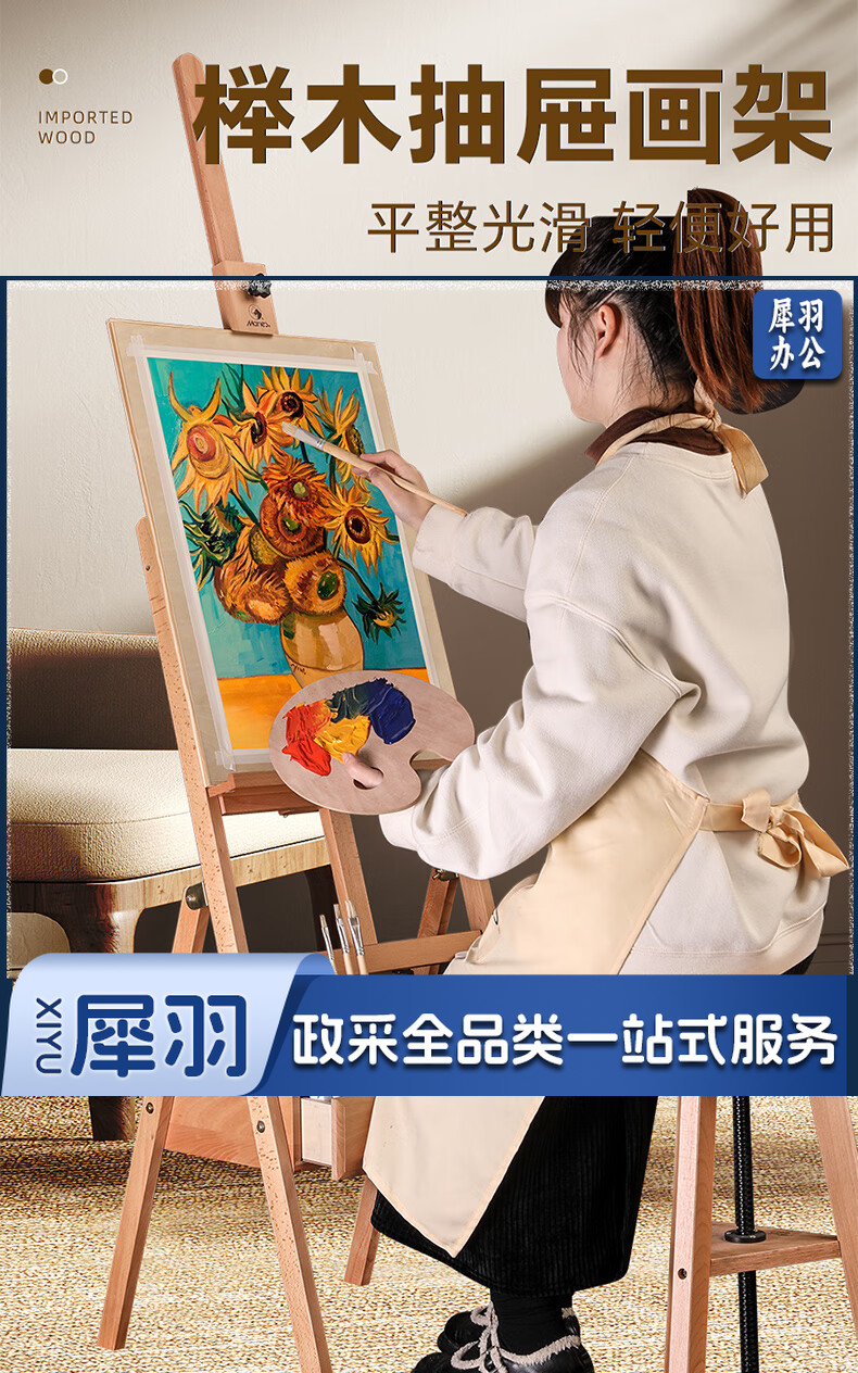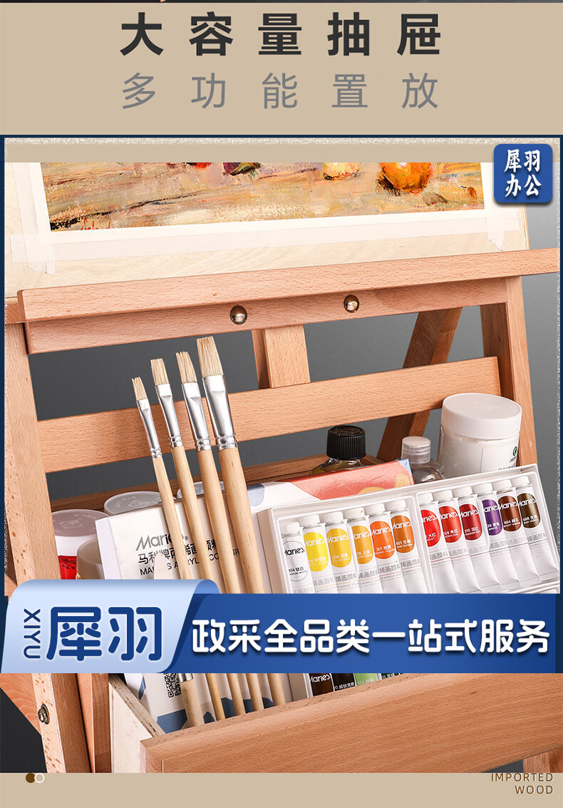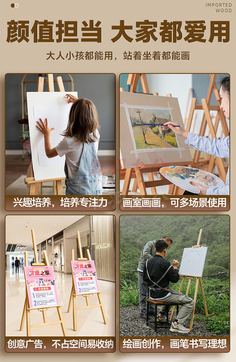 马利(Marie's)150cm松木画架 实木素描画架画板套装展示架子成人儿童折叠画板架