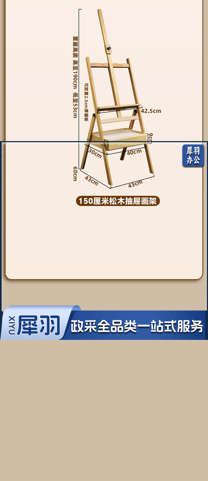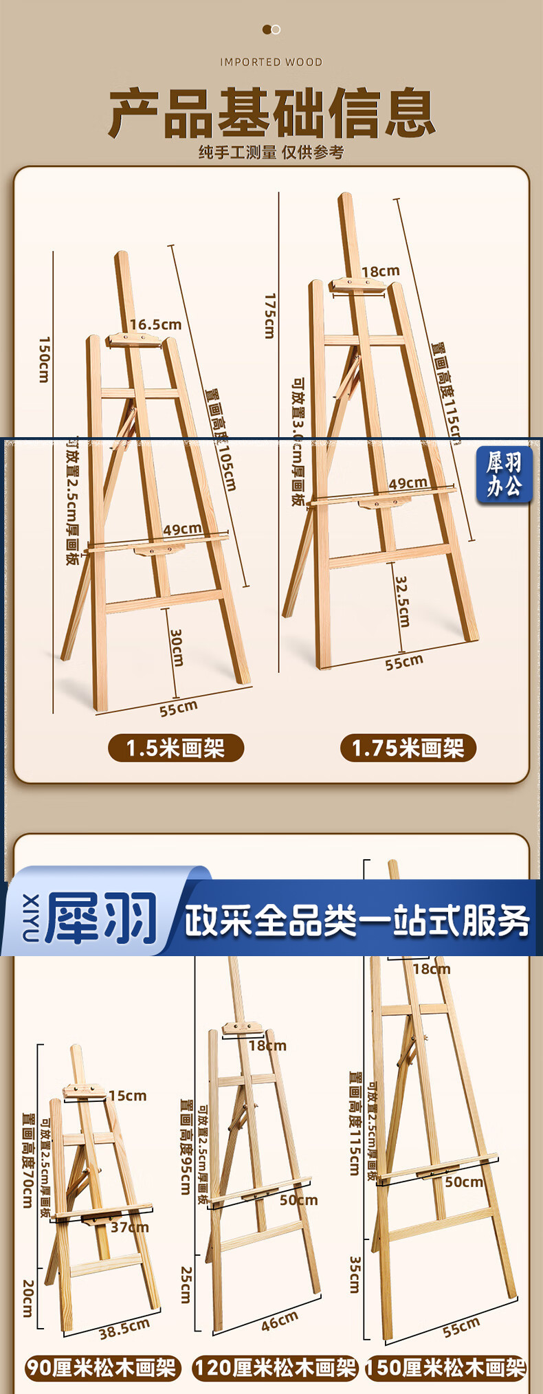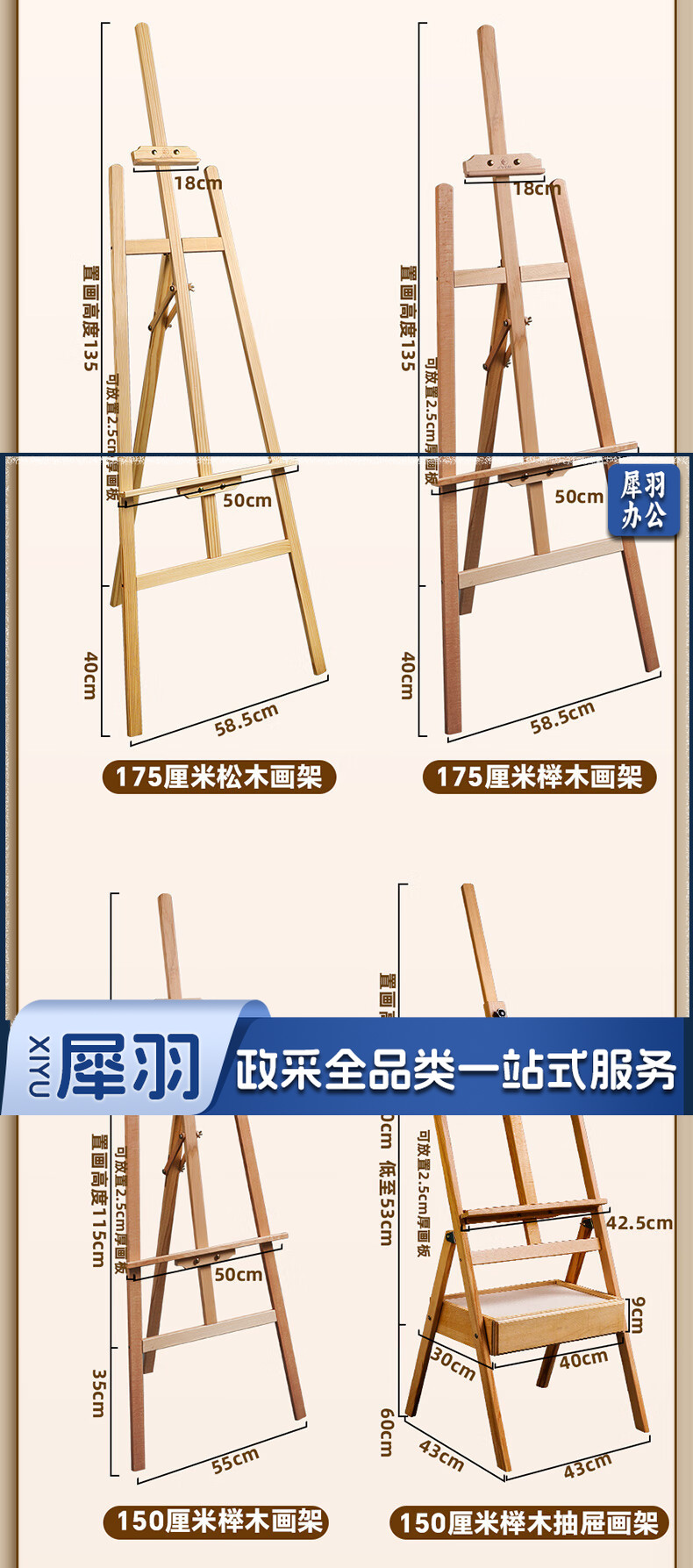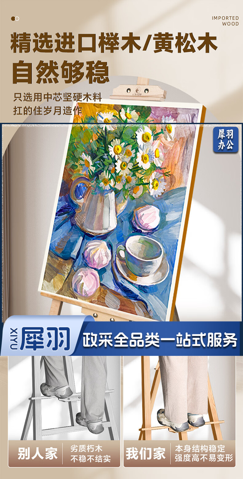 马利(Marie's)150cm松木画架 实木素描画架画板套装展示架子成人儿童折叠画板架