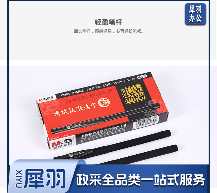 晨光(M&G)AGP17204 孔庙祈福全针管磨砂中性笔 0.5mm 碳素黑