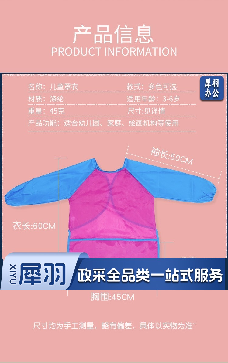 惠翌 儿童画画围裙绘画专用罩衣柒壹零优品
