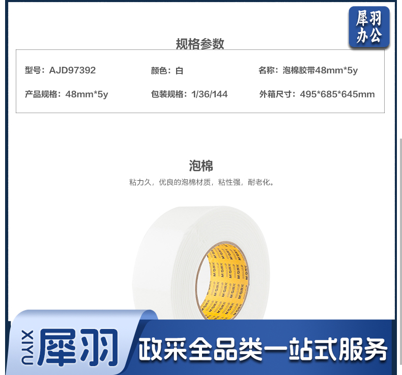 晨光双面泡棉胶带双面胶带48mm*5y(单卷)AJD97392