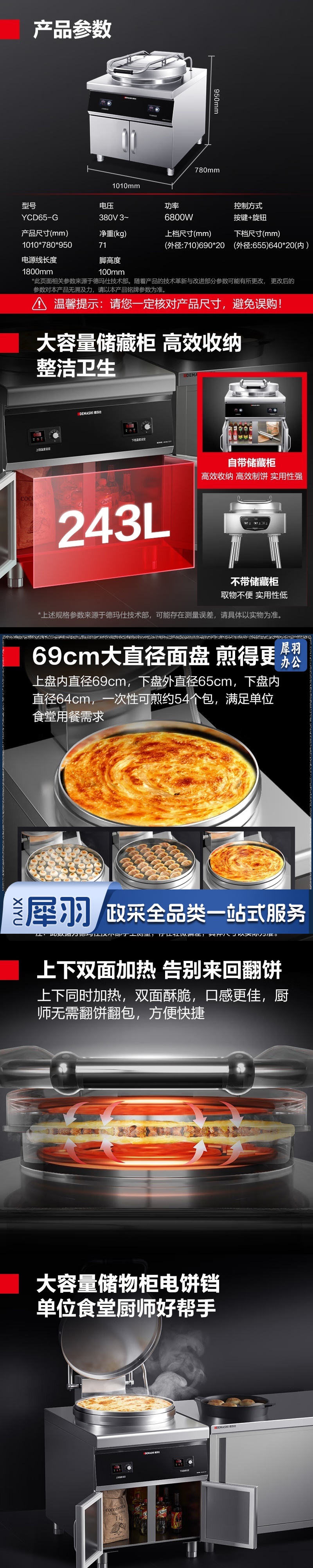商用电饼铛YCD65-G大盘柜式