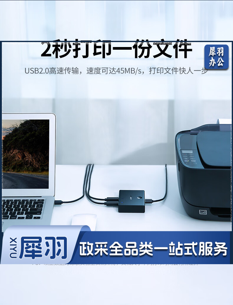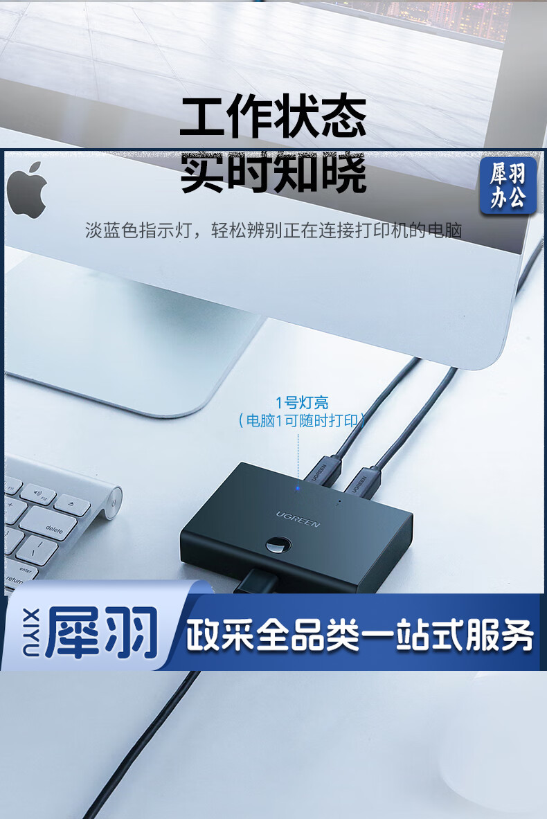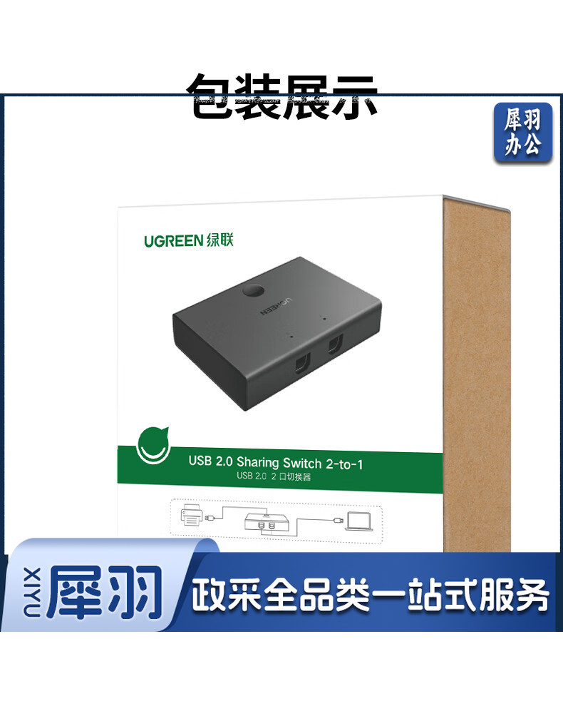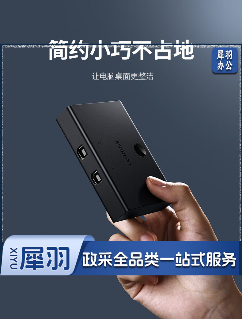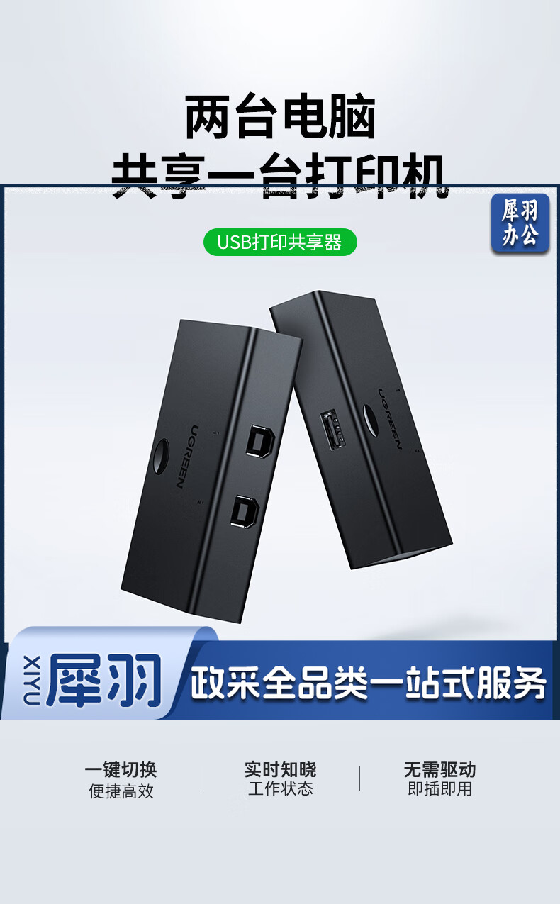 绿联 USB打印机共享器 2进1出 2口4口USB切换器 多台电脑U盘鼠标共用打印机一拖二切换器 二进一出共享器
