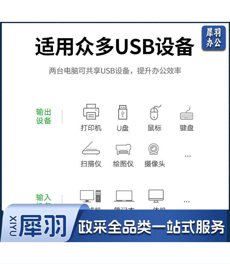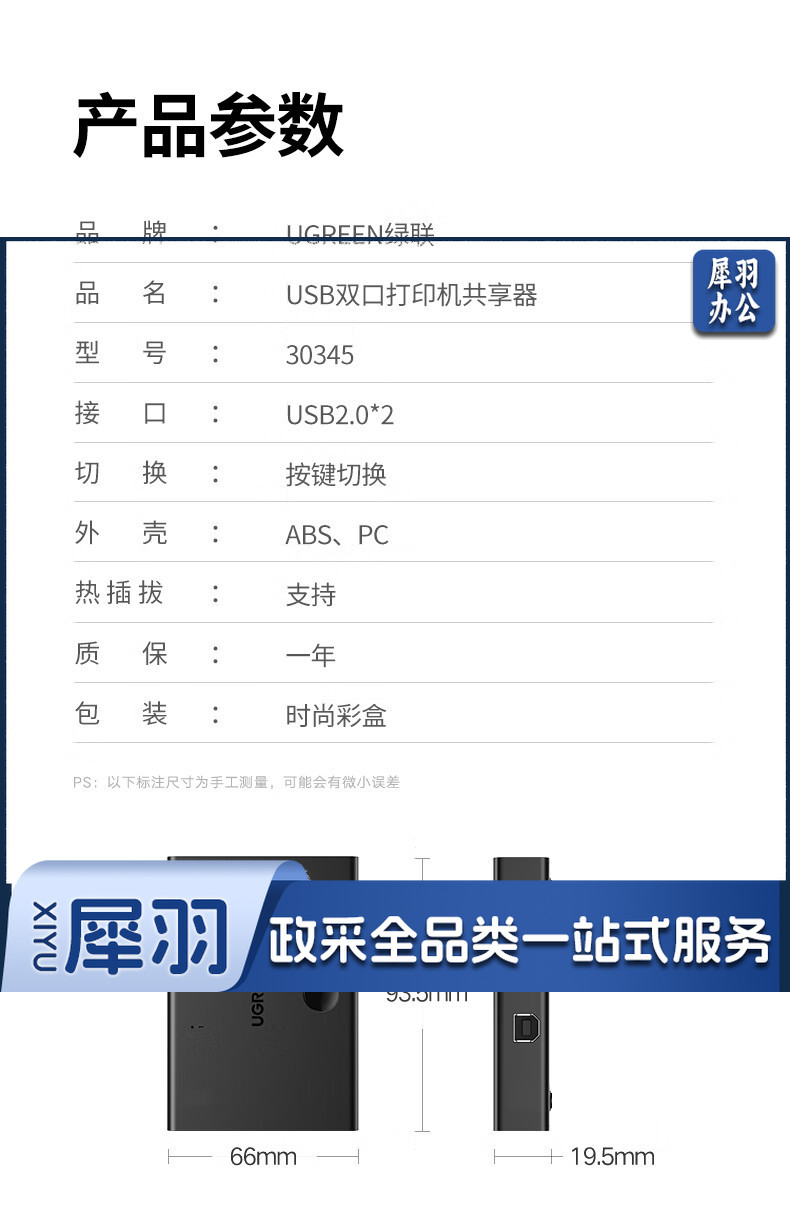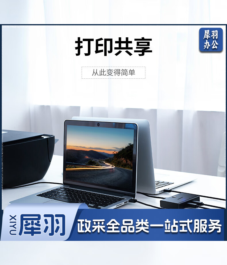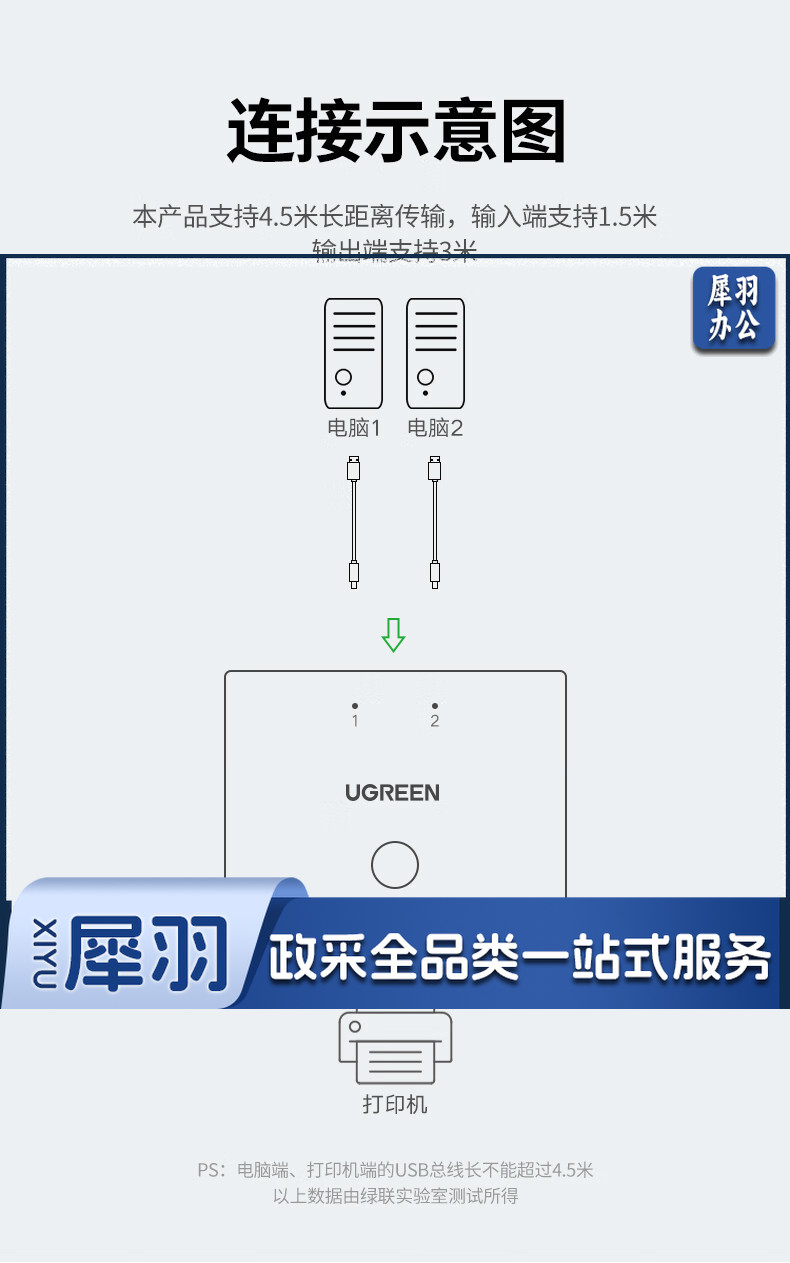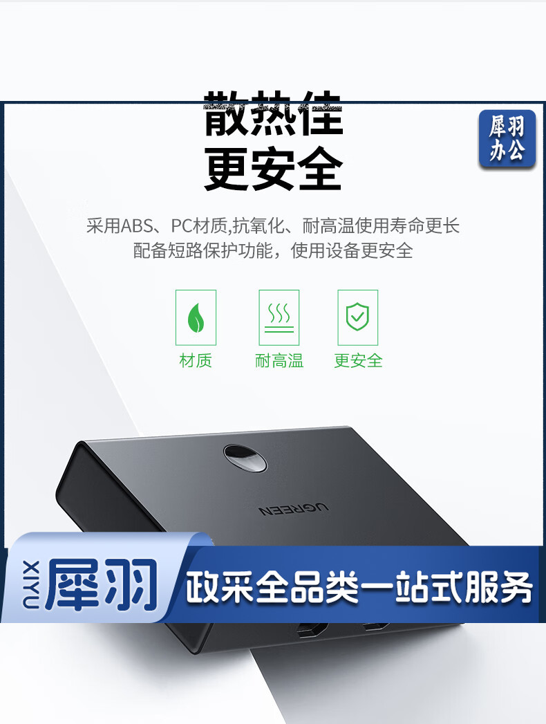 绿联 USB打印机共享器 2进1出 2口4口USB切换器 多台电脑U盘鼠标共用打印机一拖二切换器 二进一出共享器