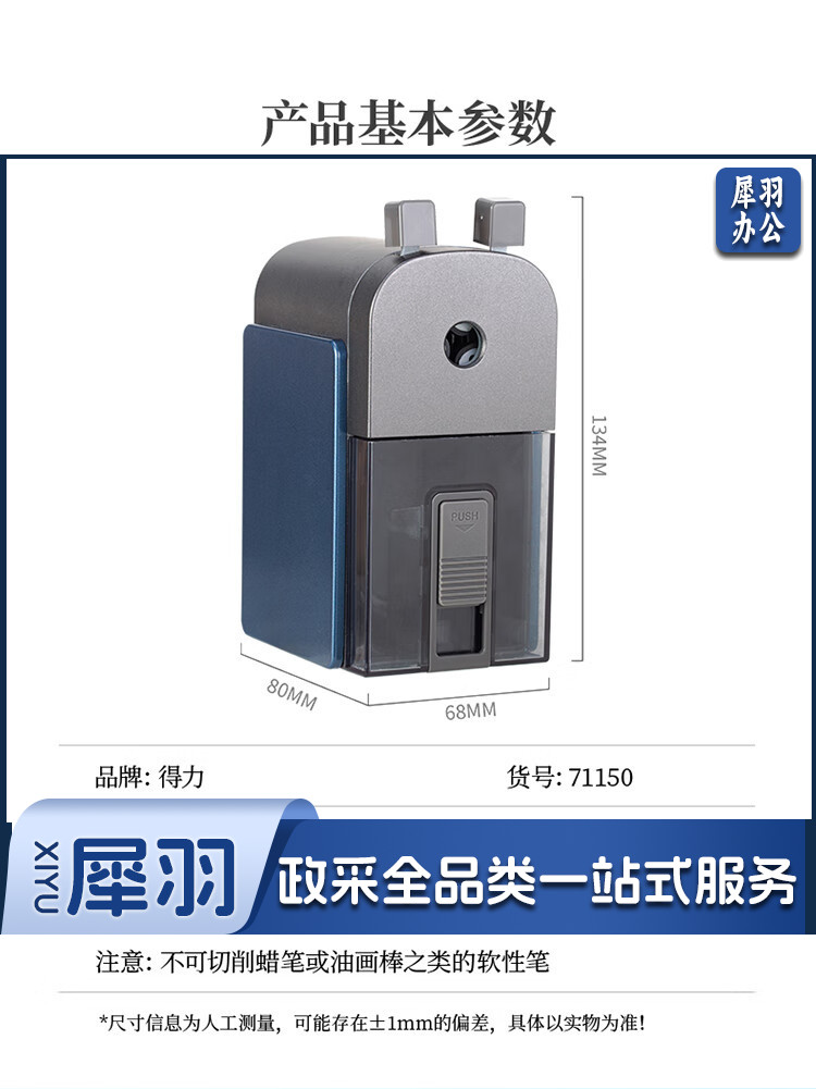 得力(deli)金属办公削笔机 学生铅笔削笔器/转笔刀/卷笔刀 蓝色71150