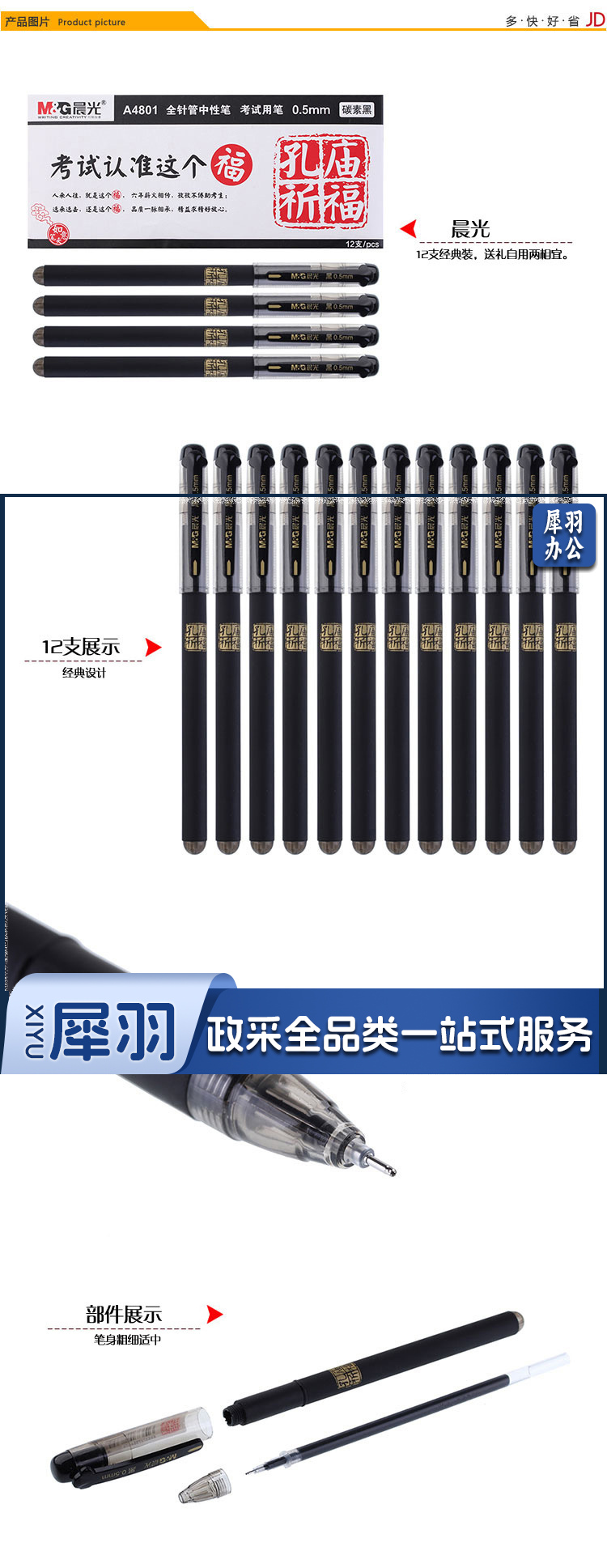 晨光(M&G)AGPA4801 全针管考试中性笔 孔庙祈福系列 0.5mm 碳素黑 12支/盒