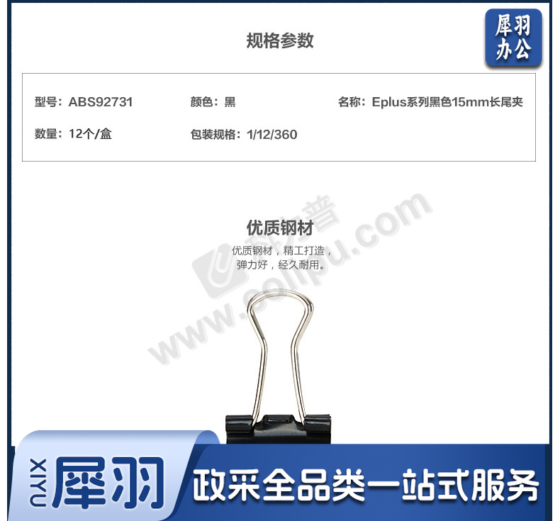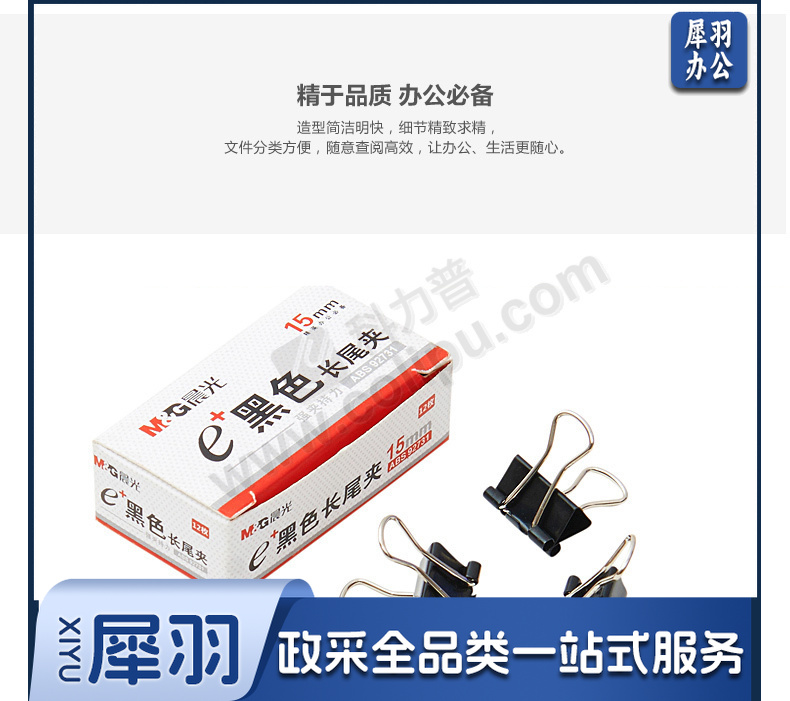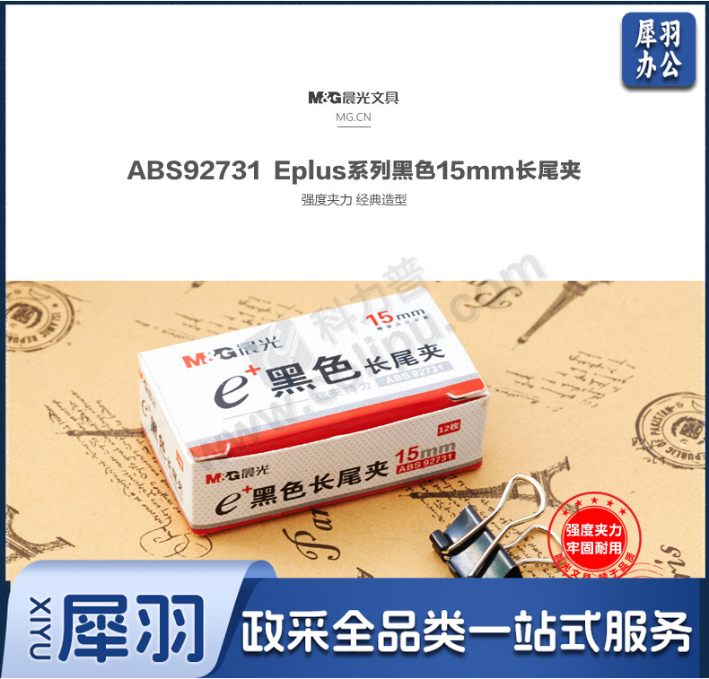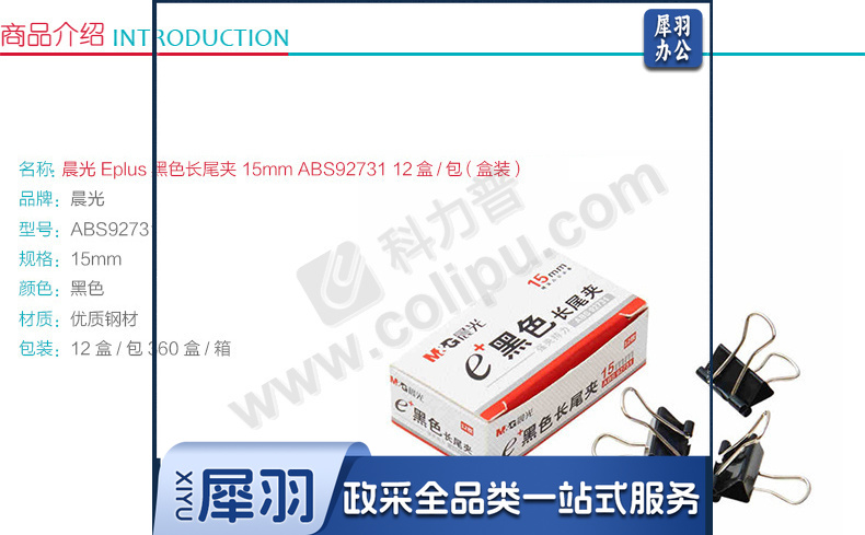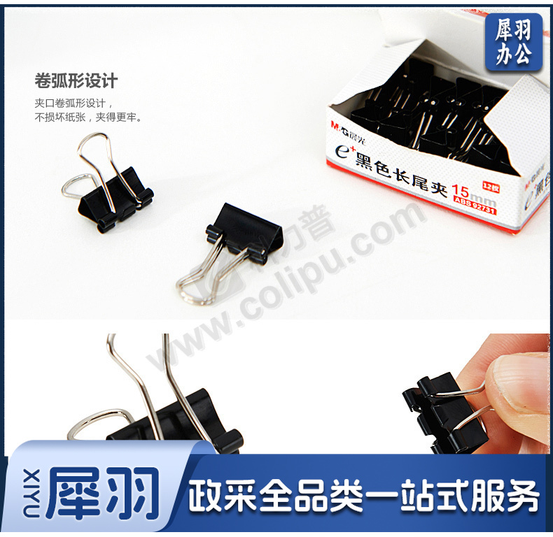 晨光 M&G Eplus盒装黑色长尾夹 6号 ABS92731 15mm 12个/盒 12盒/包 360盒/箱